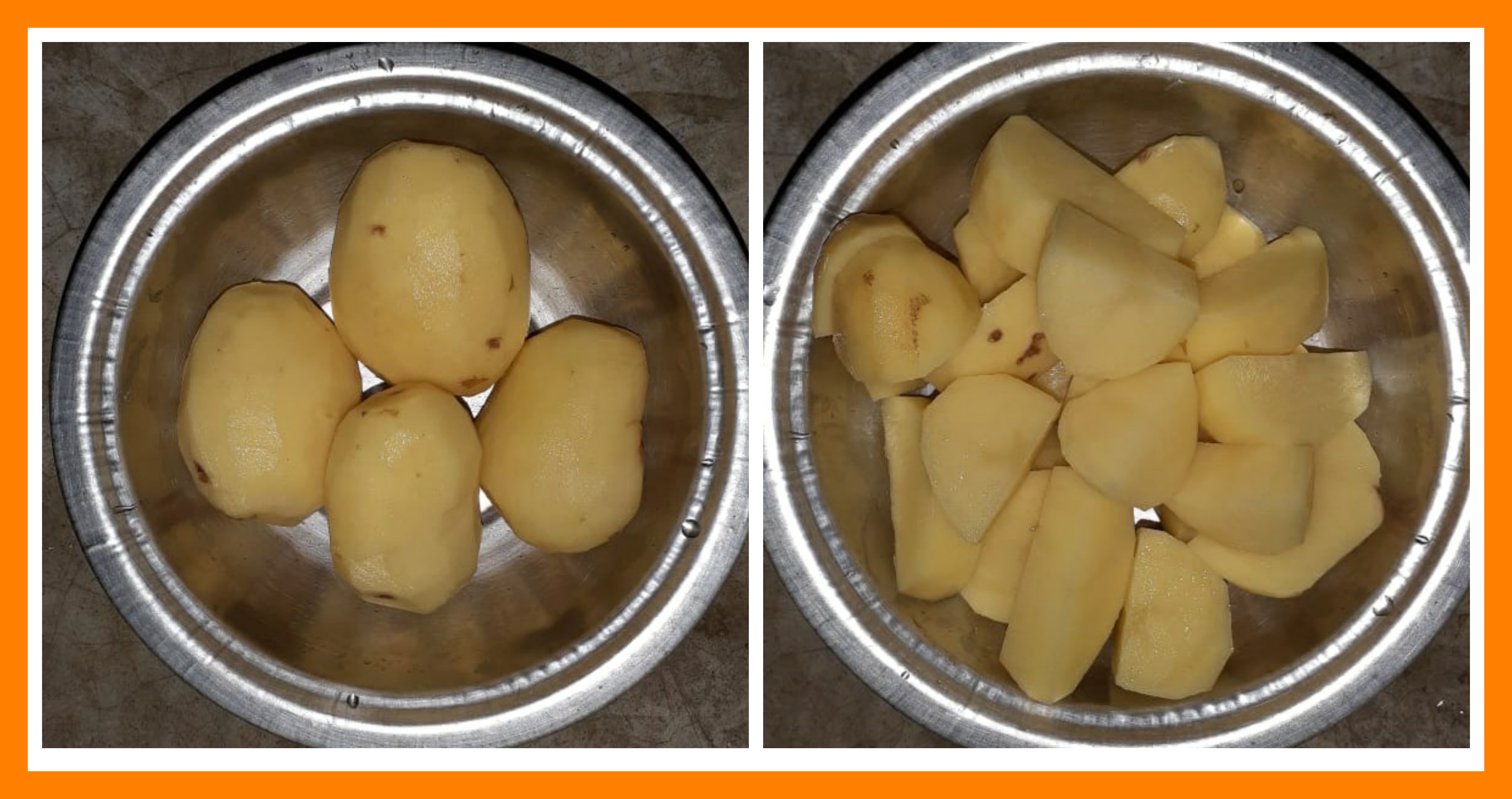 ❖আলুগুলোর খোসা প্রথমে ছালিয়ে নিয়েছিলাম। এরপর জল দিয়ে ধুয়ে কেটে নিয়েছিলাম।