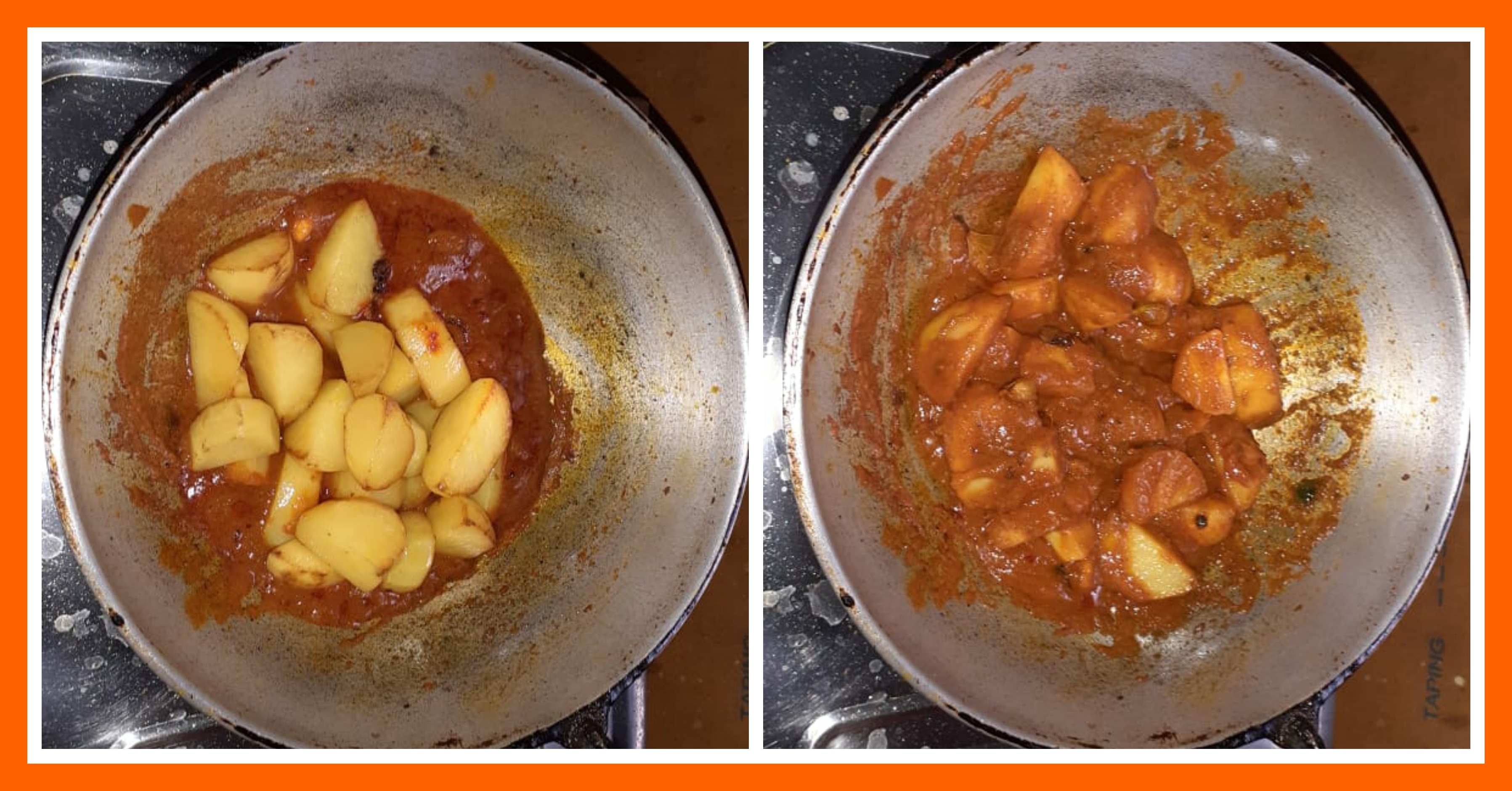 ❖কষানো হয়ে গেলে তাতে ভেজে রাখা আলু দিয়ে দিয়েছিলাম। এরপর নেড়েচেড়ে মশলার সাথে মিশিয়ে নিয়েছিলাম।