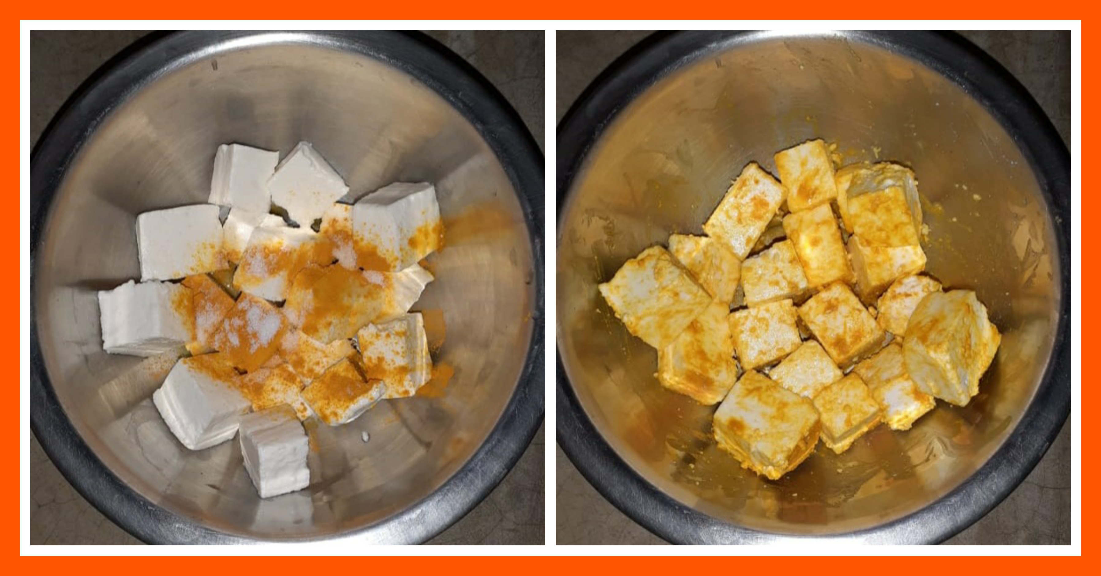 ❖পনির এর গায়ে লবন, হলুদ দিয়ে দিয়েছিলাম। এরপর গায়ে মাখিয়ে নিয়েছিলাম।