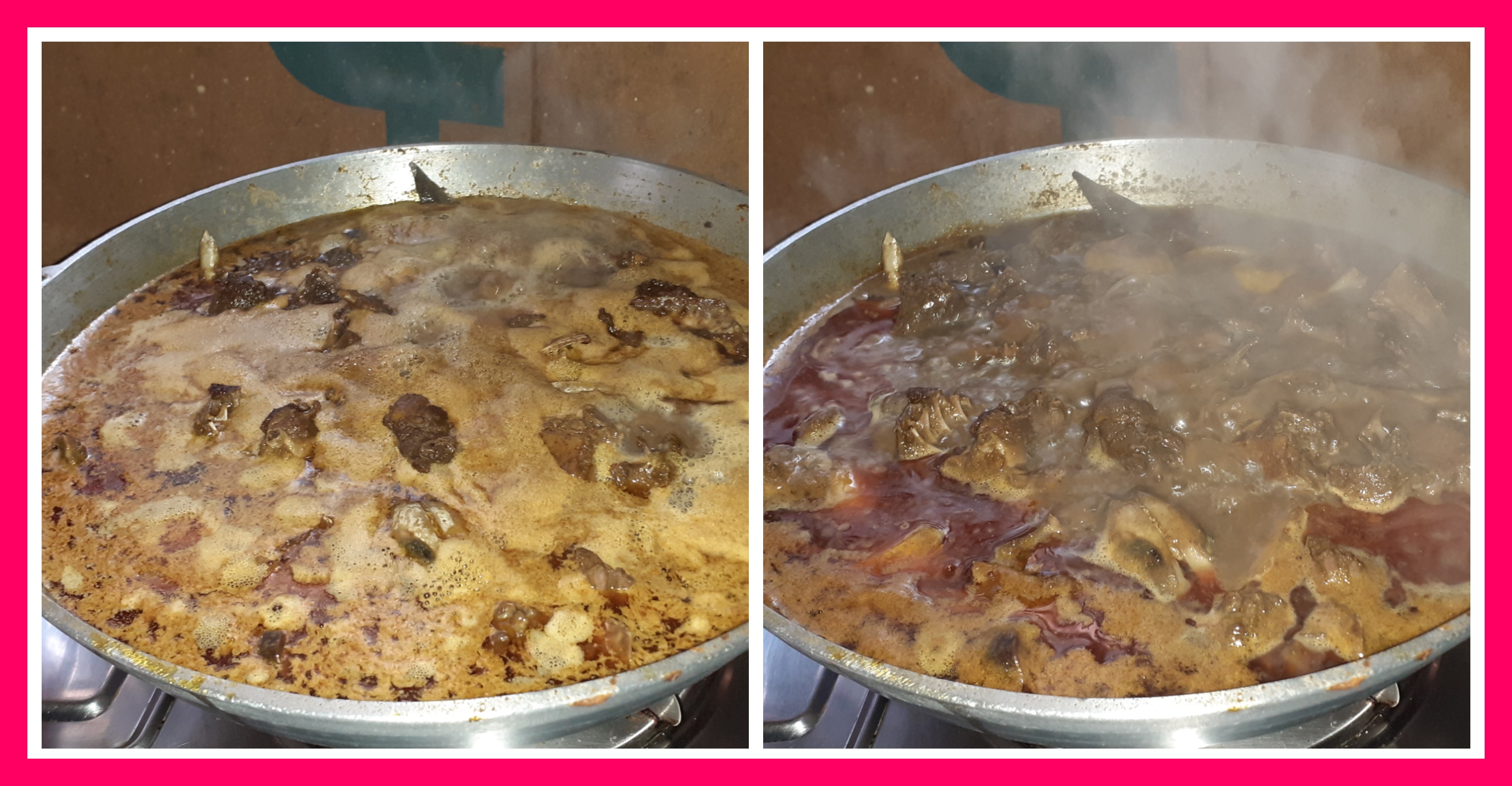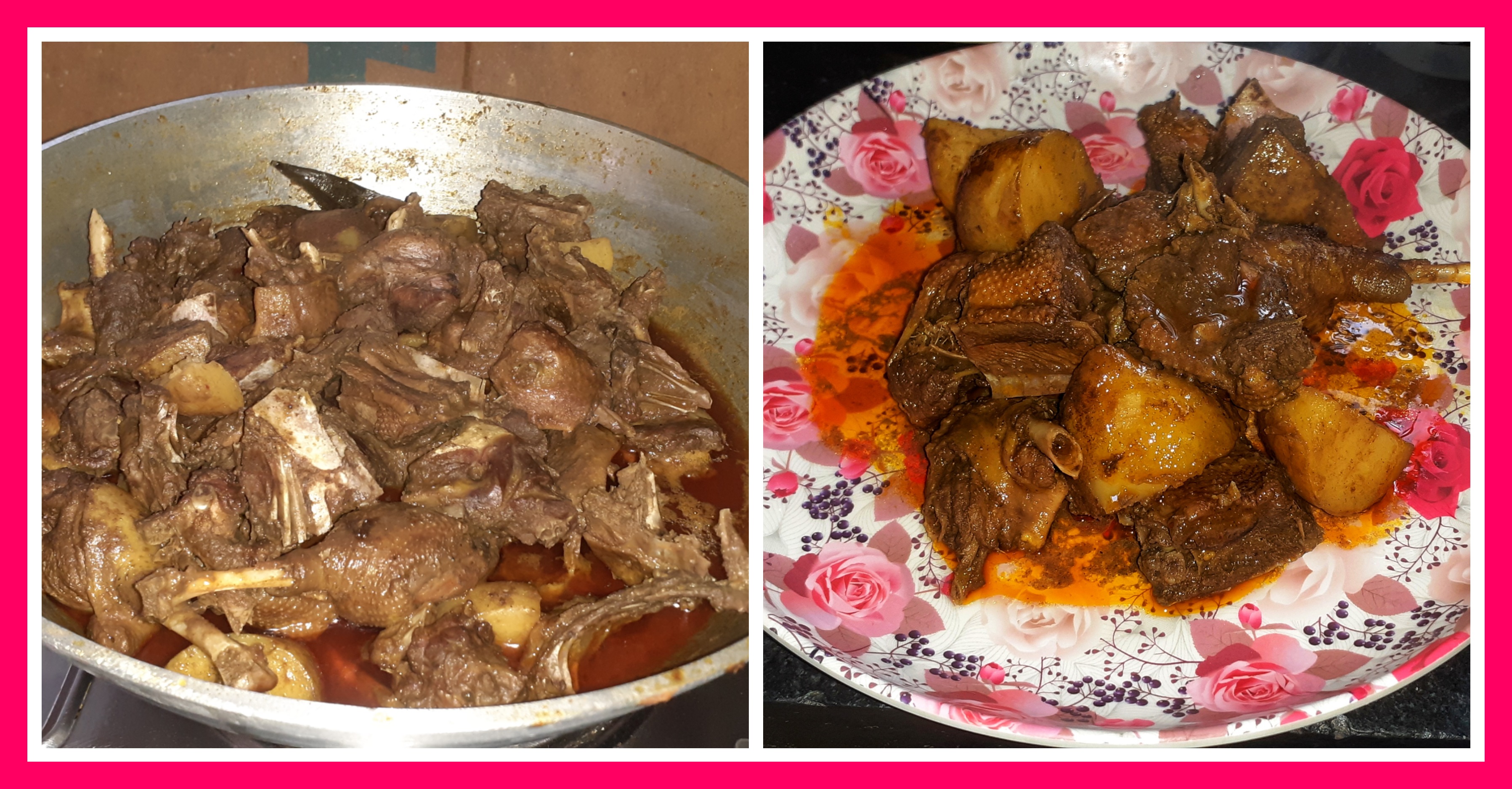 ➤জল দিয়ে দেওয়ার পরে মাংস পুরোপুরি রান্না হয়ে আসা পর্যন্ত দেরি করেছিলাম।
