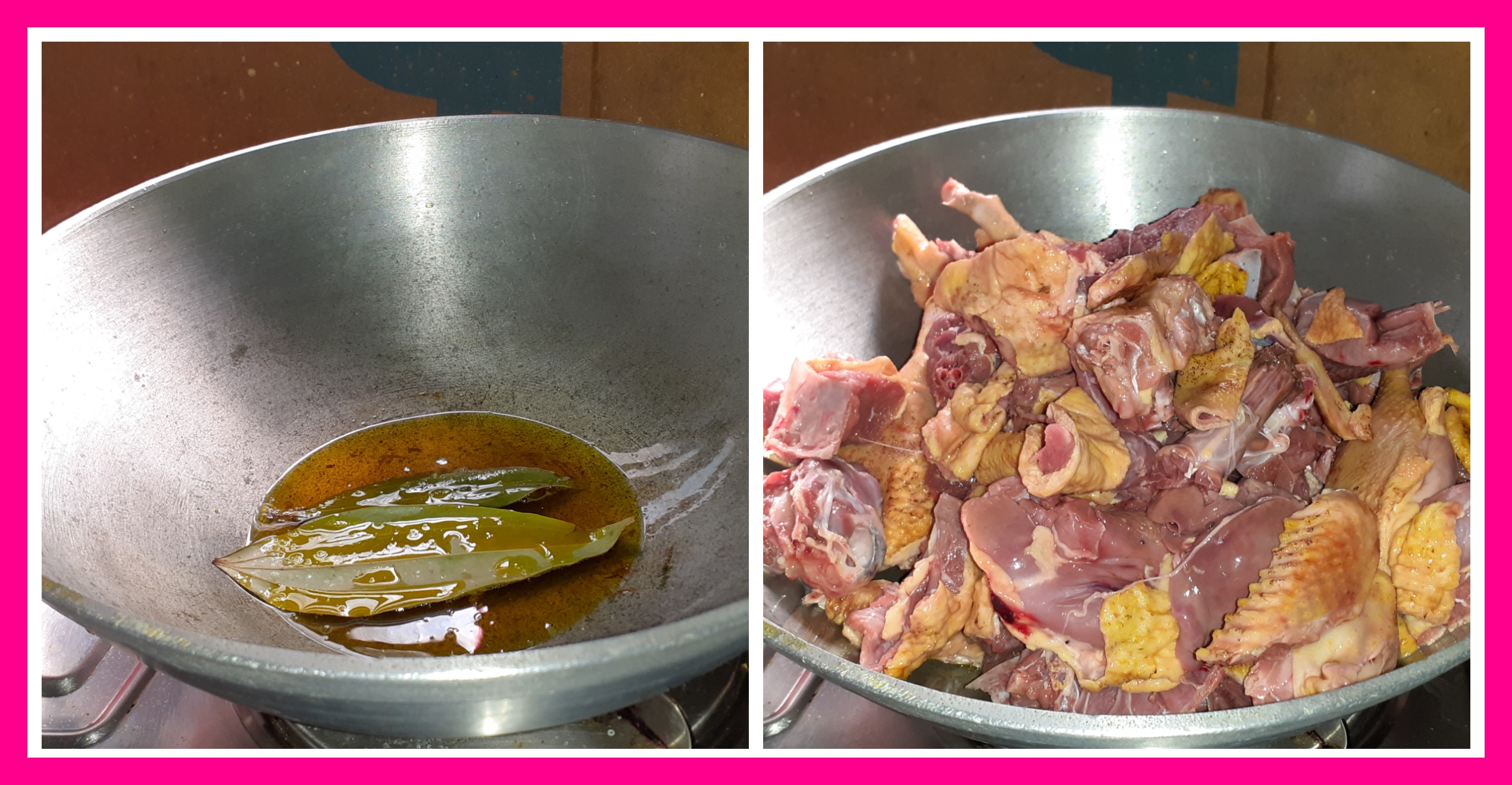 ➤কড়াইতে পরিমাণমতো তেল আর তেজ পাতা দিয়ে দিয়েছিলাম। এরপর তাতে হাঁসের মাংসগুলো ঢেলে দিয়েছিলাম।