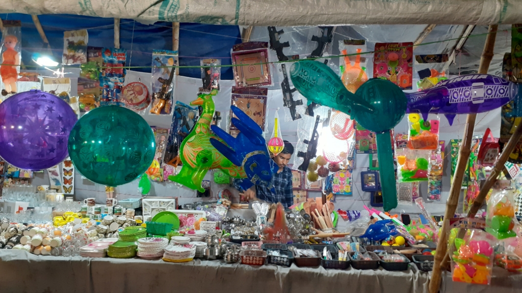 কিছুক্ষন সময় অতিবাহিত করার পরে ভাবলাম এ আবার কোন মেলায় আসলাম, লোকজন নেই তেমন। এখানে আবার একটু রাত না হলে সন্ধ্যার দিকে কেউ আসতে চায় না, পরে রাত যত বাড়ছে লোকজনও তত বাড়ছে। আমরা বেশিক্ষন থাকিনি সেখানে, আধা ঘন্টার মতো শুধু চরকি পাকের মতো দোকানের এই সাইড থেকে ঘুরে ওই সাইডে এইরকম করে সময় পার করেছিলাম। আগে ছোট বেলায় গ্রামের মেলাগুলোতে এইরকম দোকান ভর্তি বিভিন্ন জিনিস, খেলনার জিনিস দেখে ভীষণ মজা পেতাম।
