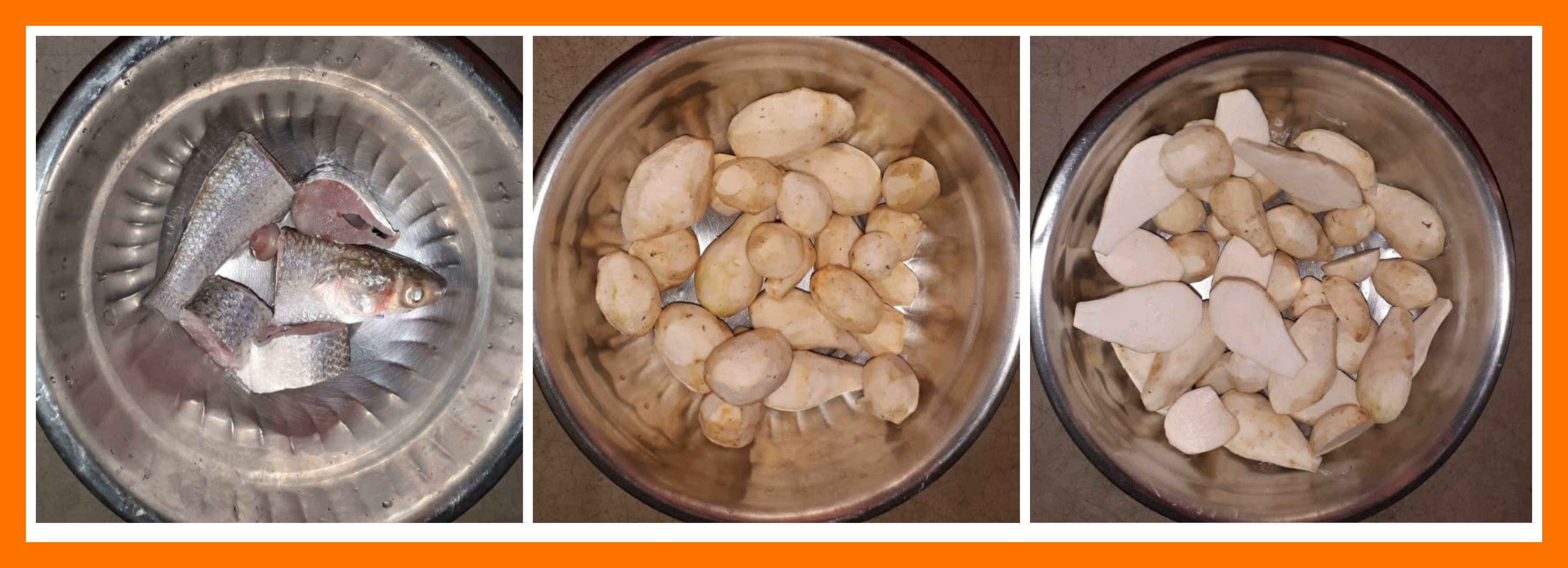 ➤ভাঙ্গাল মাছটি আগেই কেটে রাখা ছিল, আমি জল দিয়ে একবার ভালো করে ধুয়ে নিয়েছিলাম। এরপর কচুরমুখীগুলোর খোসা ছালিয়ে নেওয়ার পরে জল দিয়ে ধুয়ে নিয়েছিলাম।