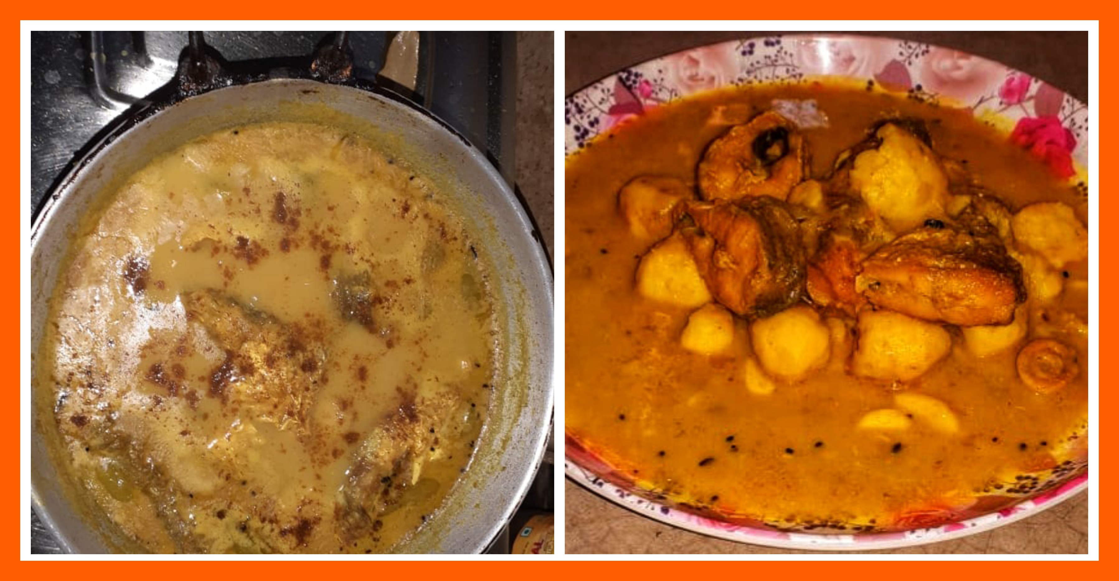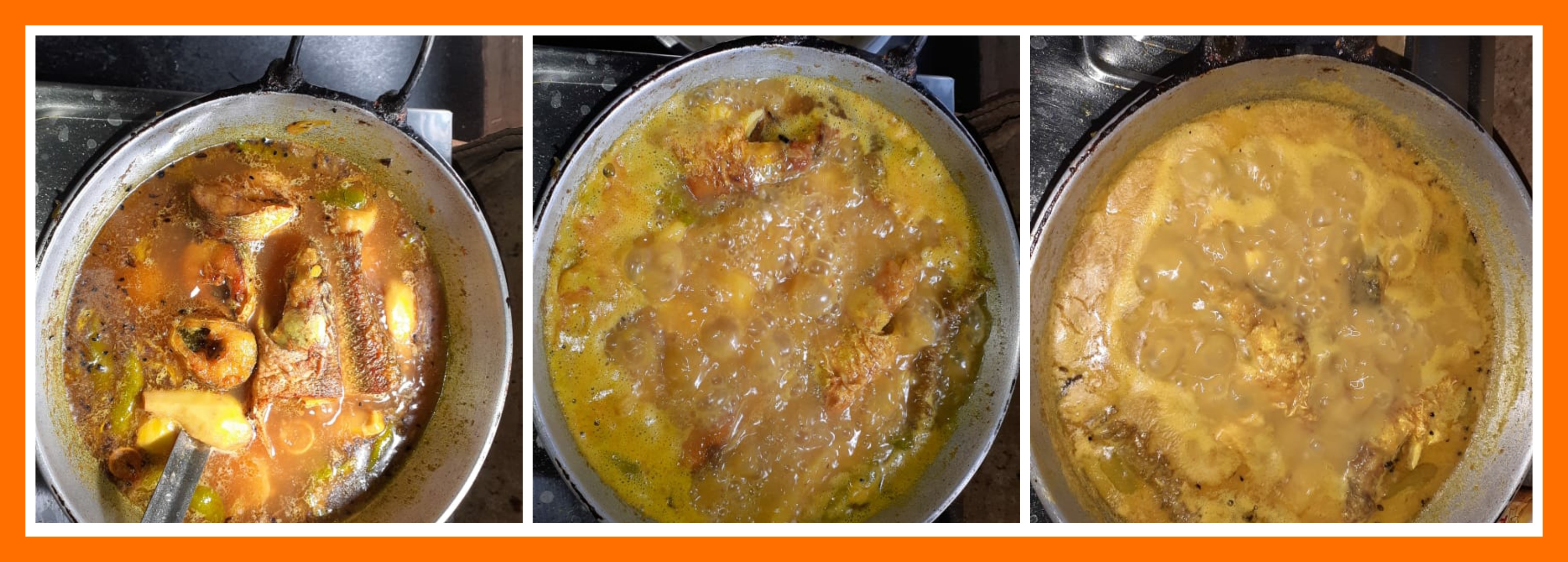 ➤জলটা কিছুক্ষন ফুটিয়ে নেওয়ার পরে তাতে ভাজা ভাঙ্গাল মাছের পিচগুলো দিয়ে দিয়েছিলাম। এরপর তরকারিটা ভালো মতো হয়ে আশা পর্যন্ত ১০ মিনিটের মতো দেরি করেছিলাম।