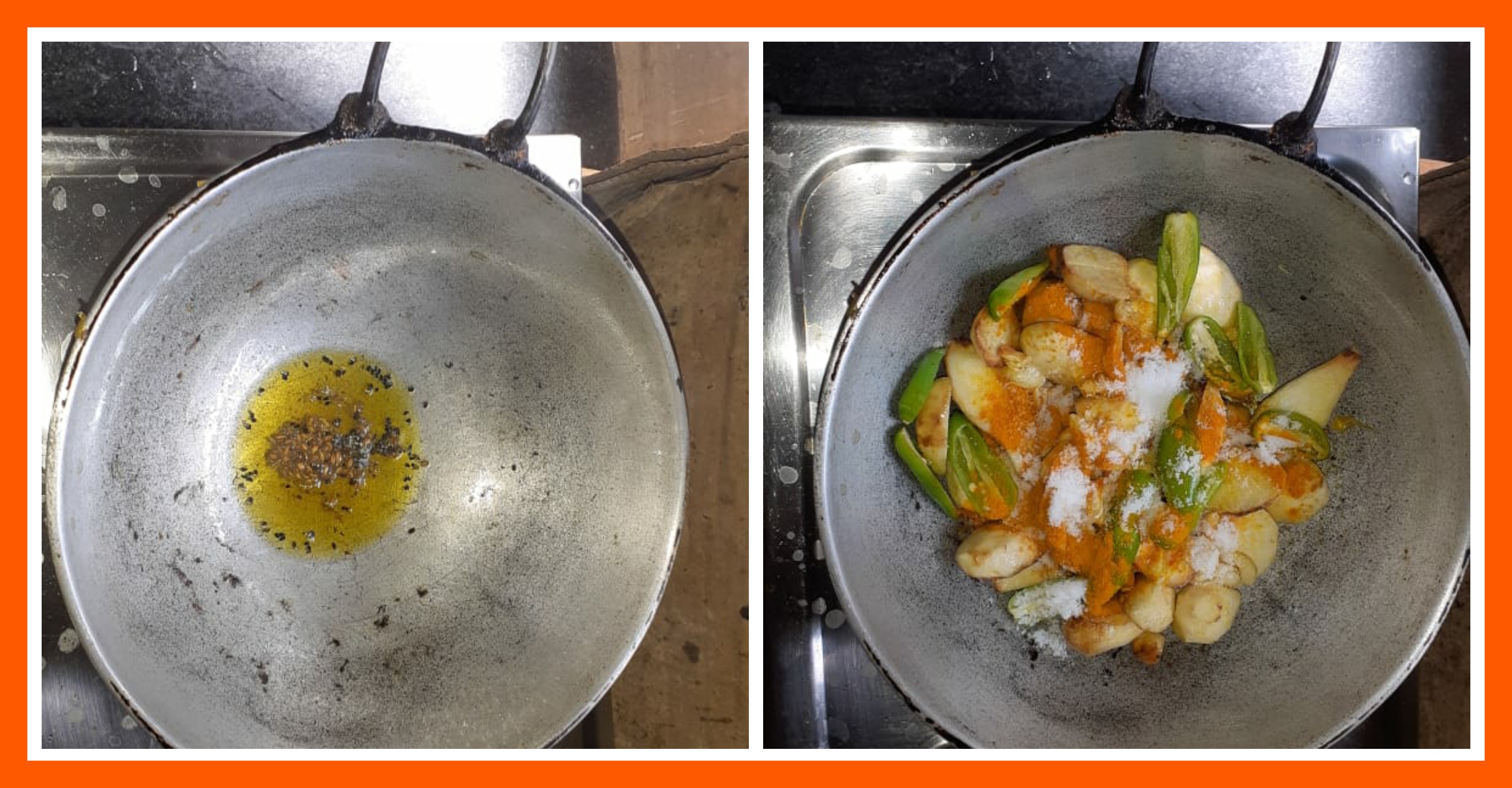 ➤কড়াইতে সরিষার তেল দিয়ে দেওয়ার পরে পাঁচফোড়ন দিয়ে দিয়েছিলাম এবং সামান্য ভাজা ভাজা মতো করে নিয়েছিলাম। এরপর তাতে ভাজা কচুরমুখী, রসুন, কাঁচা লঙ্কা দিয়ে দিয়েছিলাম। এরপর তাতে লবন, হলুদ দিয়ে দিয়েছিলাম।