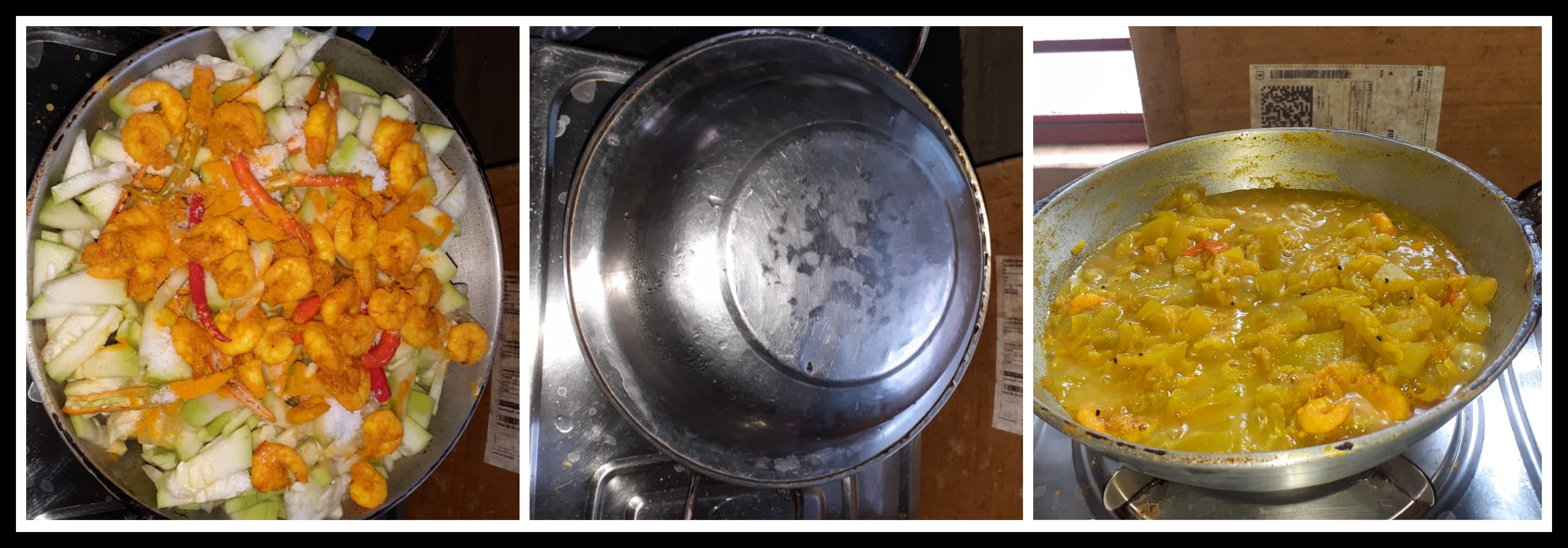 ❖কড়াইতে অল্প তেল দিয়ে দিয়েছিলাম এবং তাতে কেটে রাখা লাউ দিয়ে দিয়েছিলাম। এরপর তাতে ভেজে রাখা চিংড়ি, লঙ্কা আর লবন, হলুদ দিয়ে দিয়েছিলাম। এরপর সব একসাথে নেড়েচেড়ে মিশিয়ে ঢাকা দিয়ে রেখেছিলাম কিছুক্ষন যাতে ভালো করে তাড়াতাড়ি সেদ্ধ মতো হয়ে আসে। ঘন্ট মতো তরকারিটা হয়ে আসার জন্য কিছুক্ষন অপেক্ষা করেছিলাম।