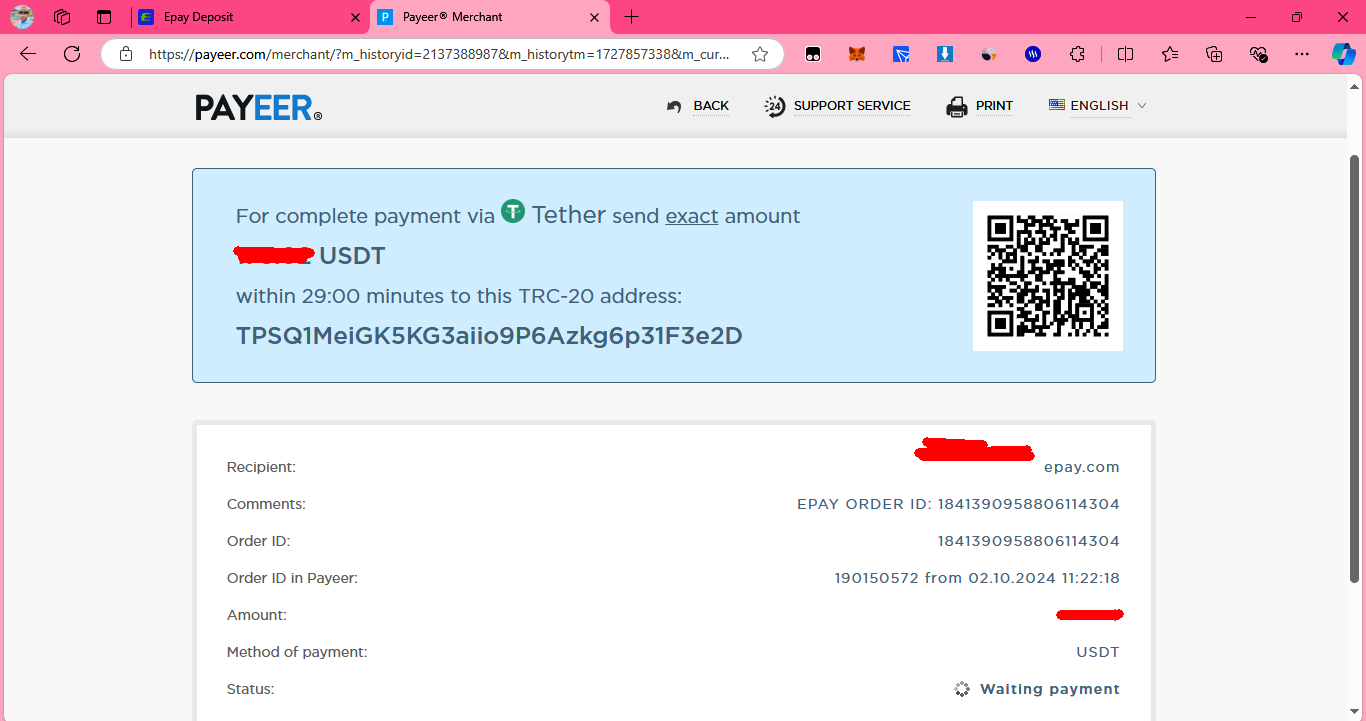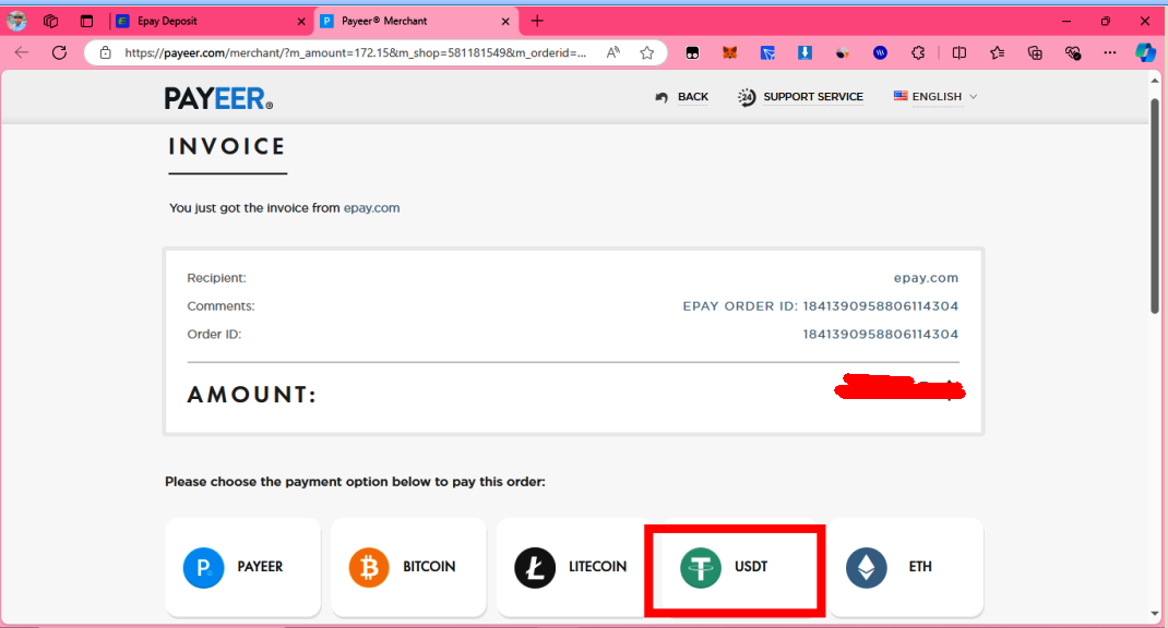 ✔এমাউন্ট বসানোর পরে নেক্সট বাটনে পর পর ক্লিক করে সামনে এগিয়ে যেতে হবে। এরপর কন্ফার্ম বাটনে ক্লিক করতে হবে এবং আপনার পরে PAYEER এর সাইট ওপেন হয়ে যাবে, তার জন্য আলাদা করে PAYEER এর ওয়ালেট লাগবে না। এরপর যেহেতু USD আনবো, তাই USDT তে ক্লিক করবো।