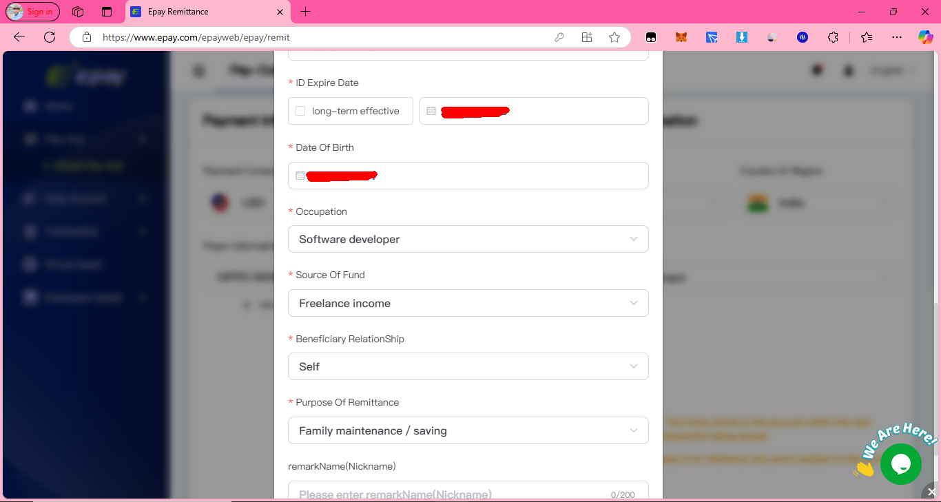 ➤এরপর আমি যেহেতু USD থেকে INR-এ পেমেন্টটি নেবো, তাই পেমেন্ট কারেন্সিতে ড্রপ ডাউন-এ ক্লিক করে USD সিলেক্ট করলাম। এরপর আপনাকে ওখানে Payer information দিতে হবে। তার জন্য নিচে "ADD" অপশনে ক্লিক করতে হবে। এরপর আপনার একাউন্ট ডিটেইলস দিতে হবে যেভাবে প্রথম থেকে দিতে বলবে। তবে সাধারণ কিছু ফিলাপ করার পরে ওখানে আপনাকে আইডি সিলেক্ট করতে বলবে এবং ওখানে পাসপোর্ট দেবেন। এরপর আপনার পাসপোর্ট এর যা যা চাইবে সেগুলো সঠিকভাবে দেখে ফিলাপ করতে হবে । এরপর আপনাকে "OCCUPATION" অপশনে "SOFTWARE DEVELOPER" সিলেক্ট করতে হবে। এরপর "SOURCE OF FUND" অপশনে "FREELANCE INCOME" সিলেক্ট করতে হবে। এরপর "BENEFICIARY RELATIONSHIP" অপশনে "SELF" সিলেক্ট করতে হবে। এরপর "PURPOSE OF REMITTANCE " অপশনে "FAMILY MAINTENANCE/SAVINGS" সিলেক্ট করতে হবে।