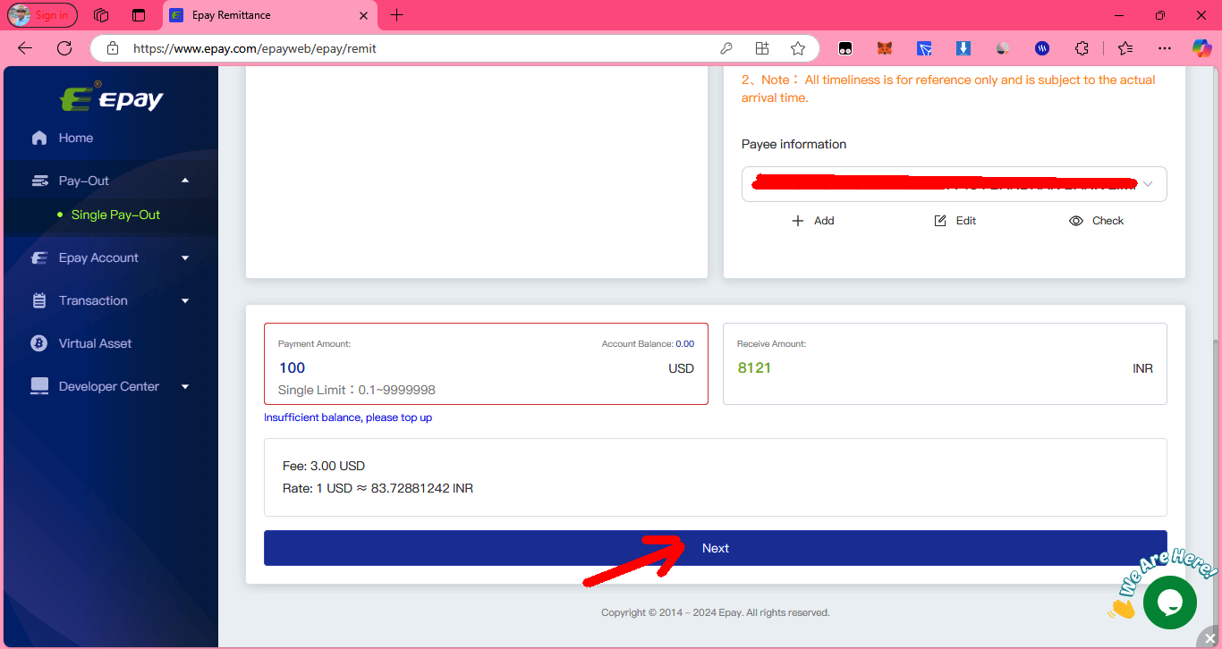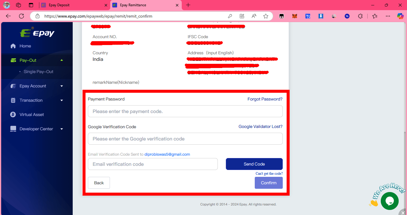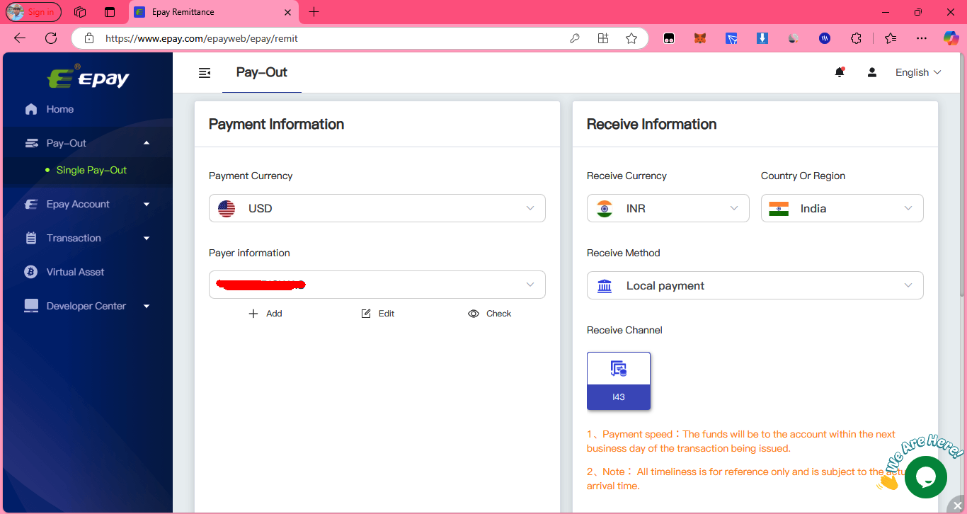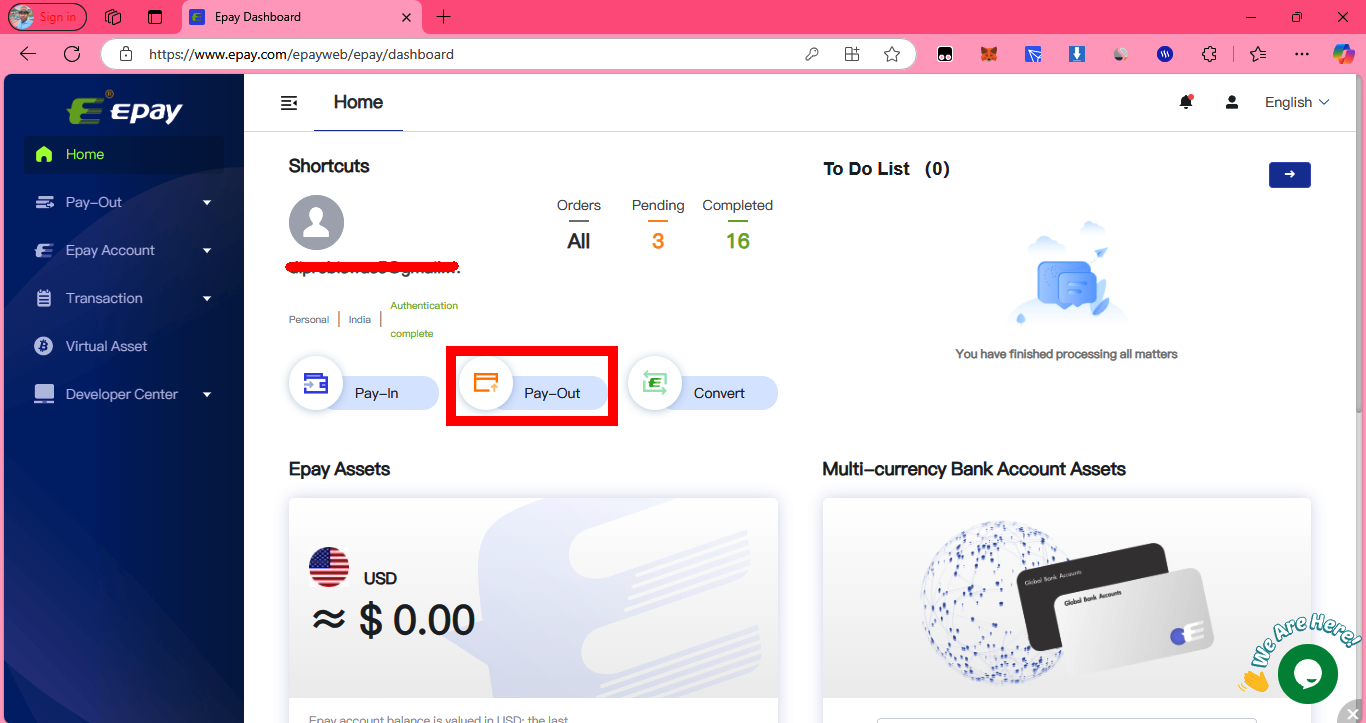 ➤প্রথমে একইভাবে Epay ওয়ালেট লগইন করার পরে আপনার ড্যাশবোর্ডে দুটি অপশন দেখতে পাবেন, একটি "Pay in" এবং অন্যটি "Pay out". Pay in অপশনটি দেখিয়েছিলাম ডিপোজিট এর সময়, যেটি ডিপোজিট এর ক্ষেত্রে ব্যবহৃত হয়। আর এখন উইথড্র এর ক্ষেত্রে "Pay out" অপশনটি ব্যবহার করতে হবে। তার জন্য "Pay out" অপশনে ক্লিক করবেন।
