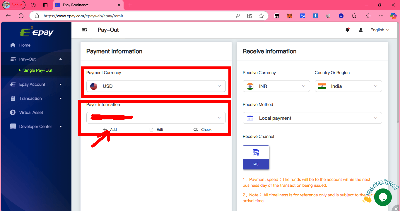 ➤এইবার রিসিভ ইনফরমেশনগুলো ফিলাপ করতে হবে। এরজন্য আপনাকে প্রথমে ড্রপ ডাউন অপশনে ক্লিক করে কারেন্সি এবং রিজিওন সিলেক্ট করে নিতে হবে। আমি INR-এ নেবো, তাই কারেন্সি এবং রিজিওন INR সিলেক্ট করে নিলাম। এরপর রিসিভ মেথডে আপনাকে ড্রপ ডাউন অপশনে ক্লিক করে LOCAL PAYMENT অপশনটি সিলেক্ট করে নিতে হবে। এরপর আপনাকে আগেরটার মতো Payee information ফিলাপ করতে হবে ADD অপশনে ক্লিক করে অর্থাৎ আপনার ব্যাঙ্ক একাউন্ট ডিটেলস এইসব দিতে হবে। তবে তার আগে দেখবেন একটা রিসিভ চ্যানেল লেখা অপশন আছে, ওখানে আরো একটা থাকে, কিন্তু ওটা টেম্পোরারি বন্ধ আছে। কিন্তু আপনারা ওই অপশনটি শো করলেও এই যে "I43" অপশনটিই সিলেক্ট করবেন। যাইহোক, Payee information এর ওখানে আপনাকে উপরে যেগুলো ফিলাপ করতে বলবে করে নেবেন এবং পরে আপনাকে ব্যাঙ্ক সিলেক্ট করতে হবে অর্থাৎ কোন ব্যাংকে আপনার টাকাটা নিতে চাইছেন আরকি। ওখানে ব্যাঙ্ক অপশনে ড্রপ ডাউনে ক্লিক করার পরে অনেকগুলো ব্যাঙ্ক আসবে এবং আপনার ব্যাঙ্ক সিলেক্ট করার সাথে সাথে ব্রান্স কোড এবং ব্যাঙ্ক নাম অটো চলে আসবে, ব্যাঙ্ক নাম না আসলে টাইপ করে নিতে পারবেন। এরপর আপনার ব্যাঙ্ক ডিটেলস বাকি যা যা চাইবে সেটা দেবেন এবং লাস্টে এড্ড্রেস অবশ্যই আপনার ব্যাঙ্ক এর সাথে যেটা অ্যাড করা আছে ওটাই দেবেন।