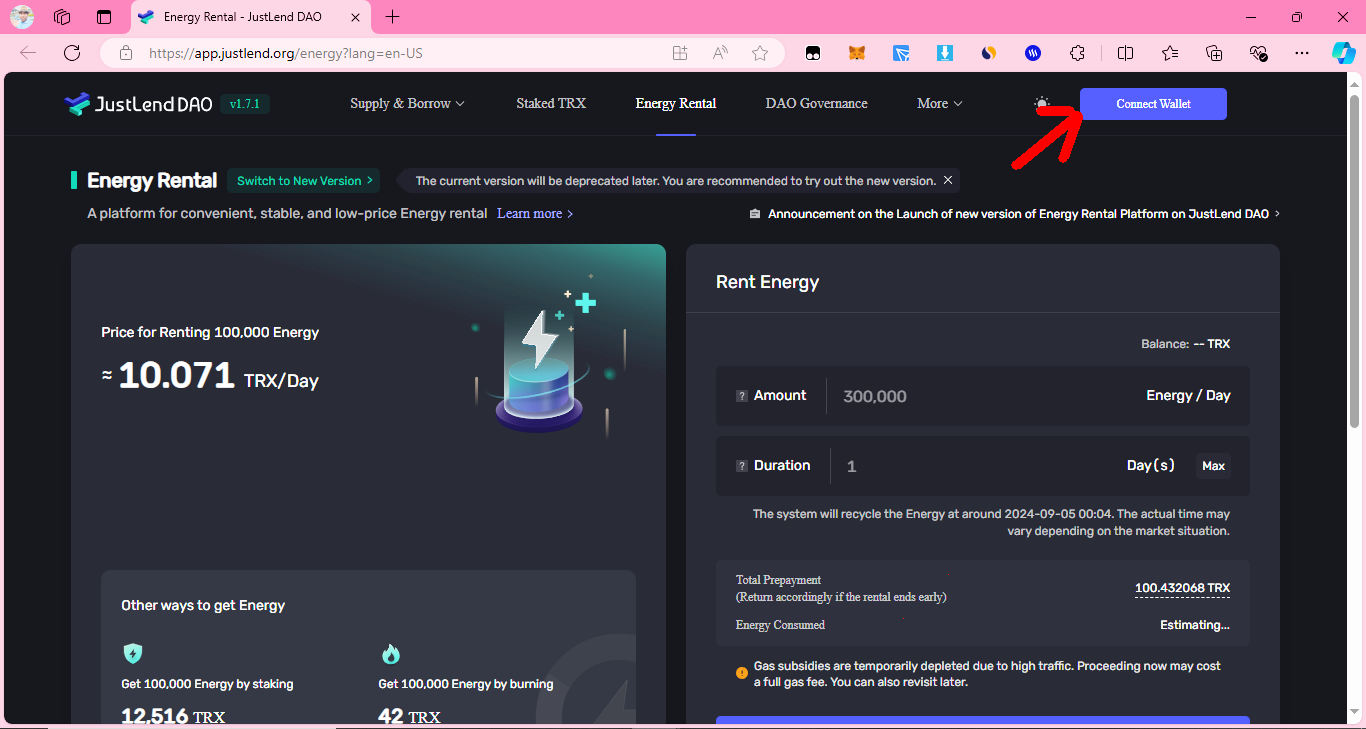 ✔প্রথমে আপনাকে https://app.justlend.org/energy?lang=en-US এই সাইটে যেতে হবে। এরপর আপনাকে 'কানেক্ট ওয়ালেটে' ক্লিক করতে হবে অর্থাৎ আপনার যে TronLink ওয়ালেট আছে সেটার সাথেই কানেক্ট করতে হবে আরকি।