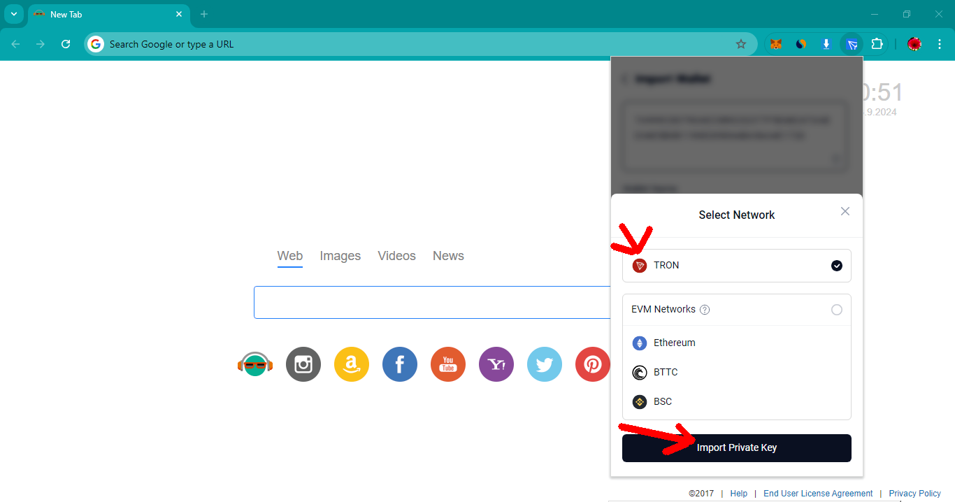 ✔প্রাইভেট key দেওয়ার পরে নেক্সট বাটন এ ক্লিক করতে হবে। এরপর আপনার ওয়ালেট নাম এবং পাসওয়ার্ড সেট করতে হবে। ওয়ালেট নাম আপনার স্টিমিট id বা আপনার ইচ্ছামতো রাখতে পারেন। তবে পাসওয়ার্ড মাস্ট স্ট্রং দেবেন ( uppercase, lowercase & number ) মিক্সিং করে দেবেন। এরপর নেক্সট বাটন এ ক্লিক করার পরে নেটওয়ার্ক সিলেক্ট করতে বলবে। তখন ট্রন নেটওয়ার্ক সিলেক্ট করবেন সবাই। এরপর ইম্পোর্ট প্রাইভেট key বাটনে ক্লিক করলে আপনার ইম্পোর্ট এর কাজ শেষ হয়ে যাবে।