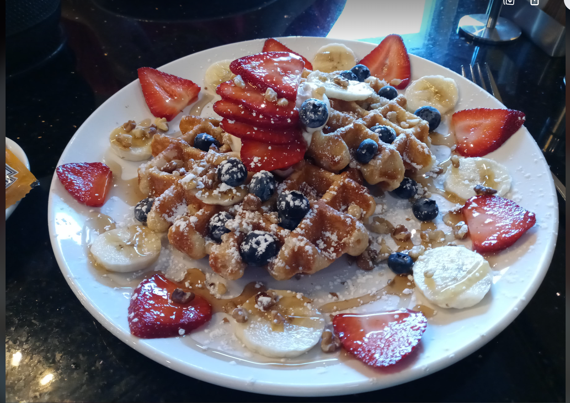 This is my most recent eats at our local restaurant on the Space Coast! Waffles with fruit