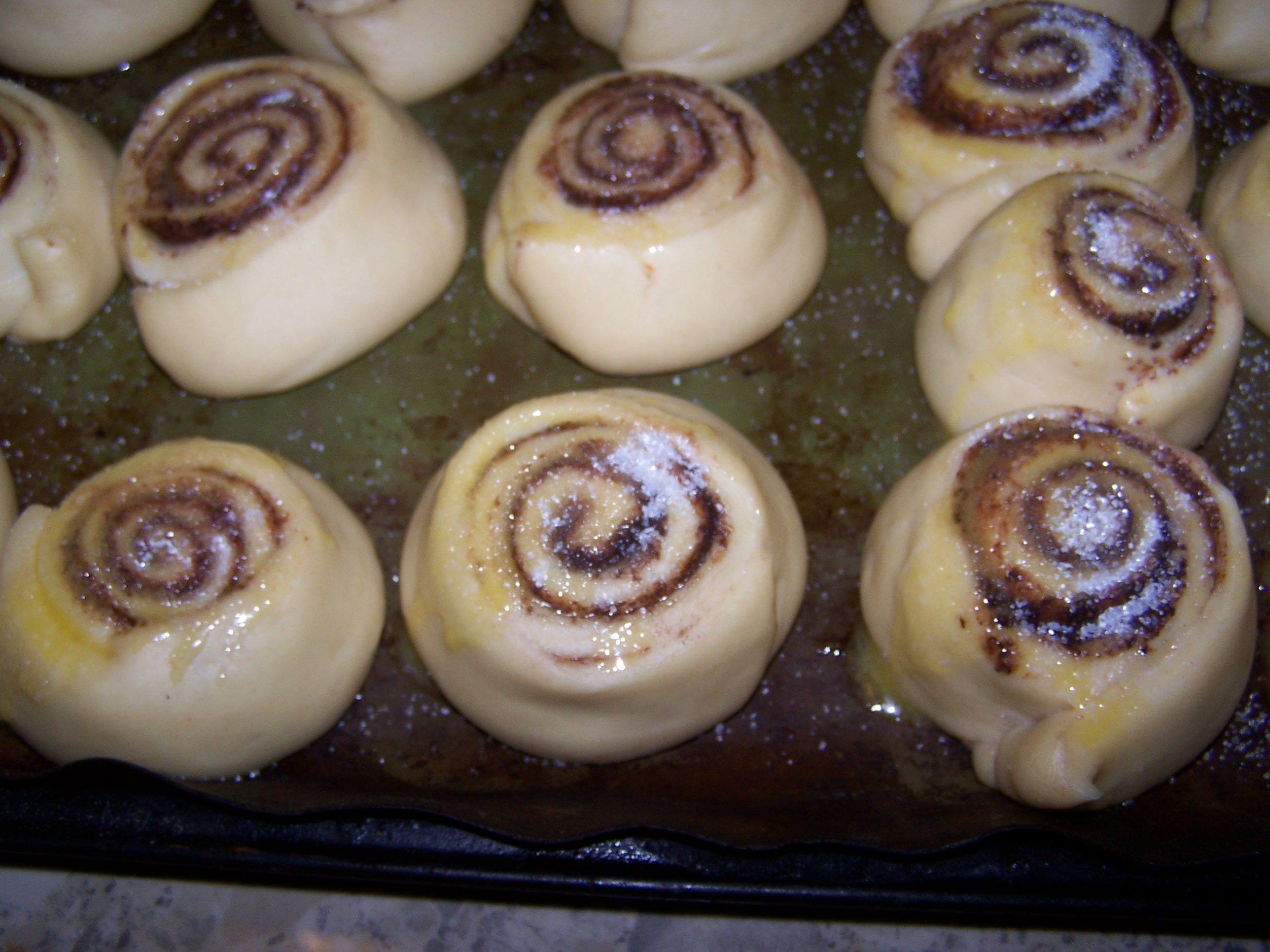 Una vez que los roles alcanzan el tamaño deseado, finalmente llegó el momento de llevar los al horno a 180°C. Cuando nuestros roles tengan 10 min en el hornos, batimos un huevo y sacamos los roles del horno, los barnizamos con huevos y le espolvoreamos un poco de azucar.