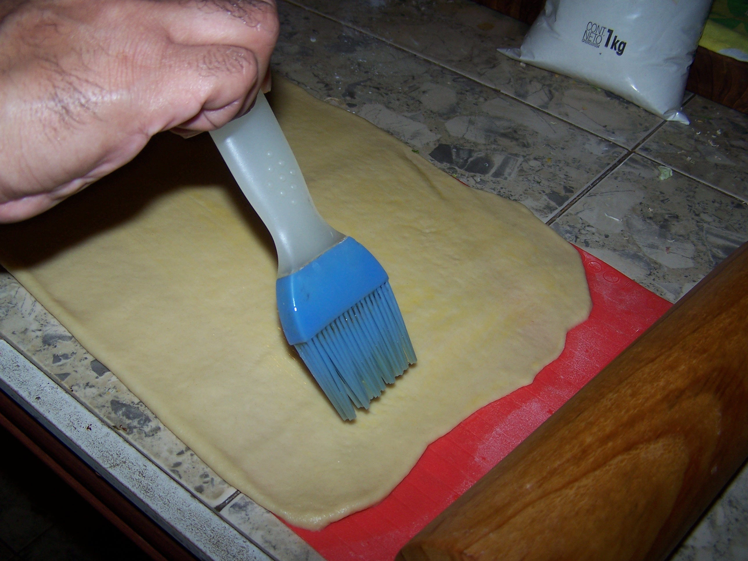 Seguidamente, barnizamos la masa con un poco de margarina derretida.
