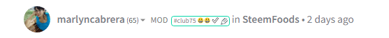 2-) You produced a content in the SteemFoods Community and used the #club5050 hashtag in your post. After checking the last 60 days of activity in your wallet, if the amount of SP Power Up in your wallet in the last 60 days is at least 3 times the amount of steem+ sbd you transferred, I will add the #club75😀😀 badge next to your name.