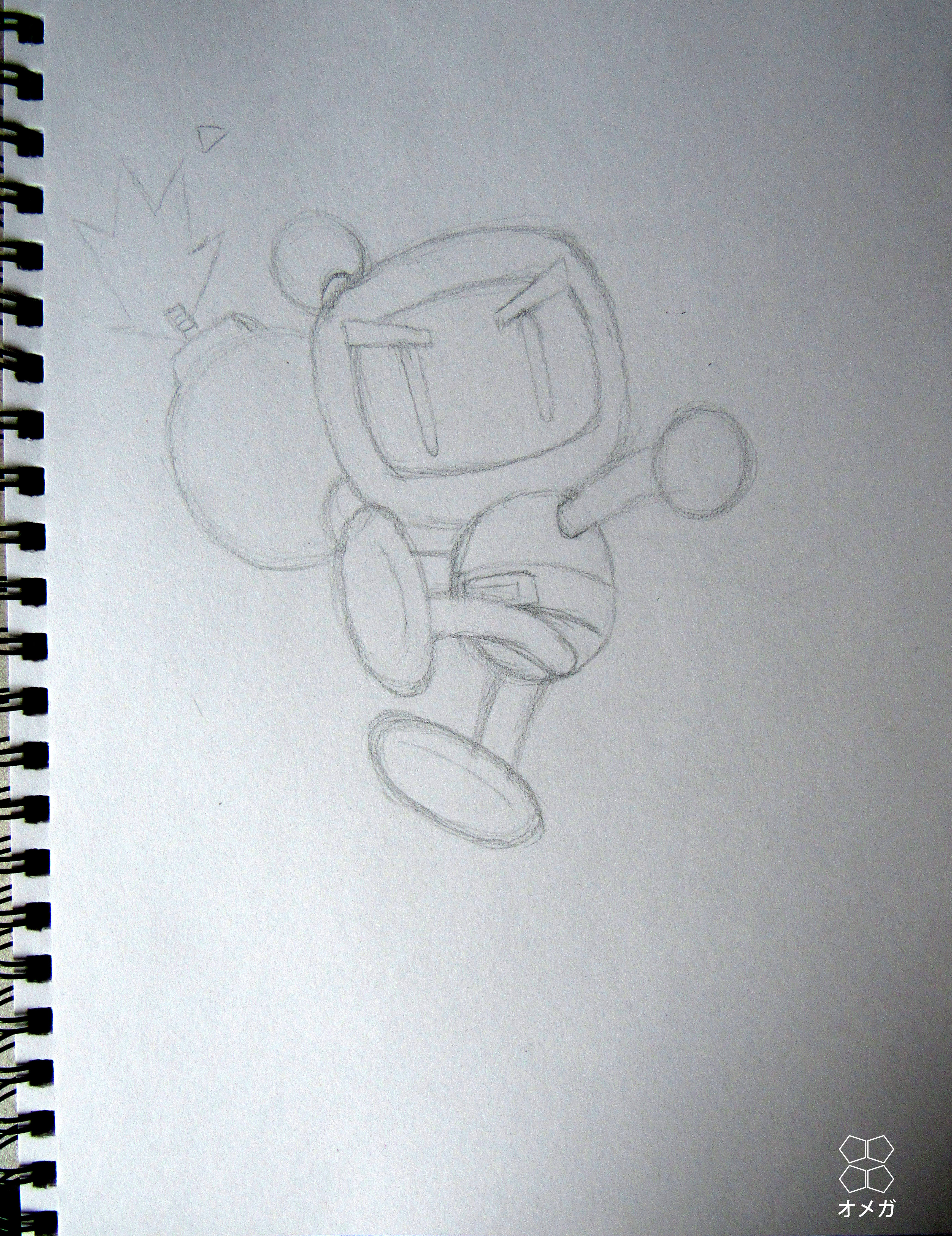 Just a quick sketch of Bomberman. It's always tricky trying to figure out how to center the picture, at least for me anyway. I actually drew another Bomberman character before this one, but for some reason I wanted to redraw the character in another way.