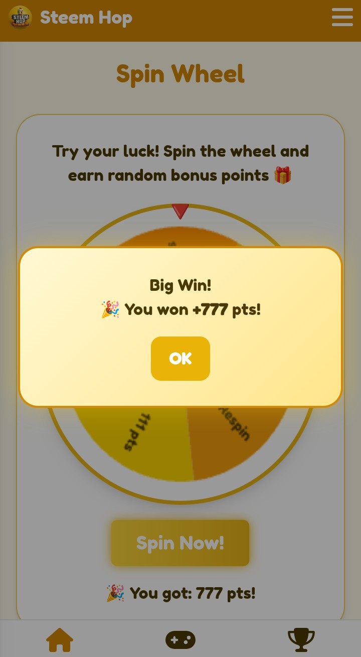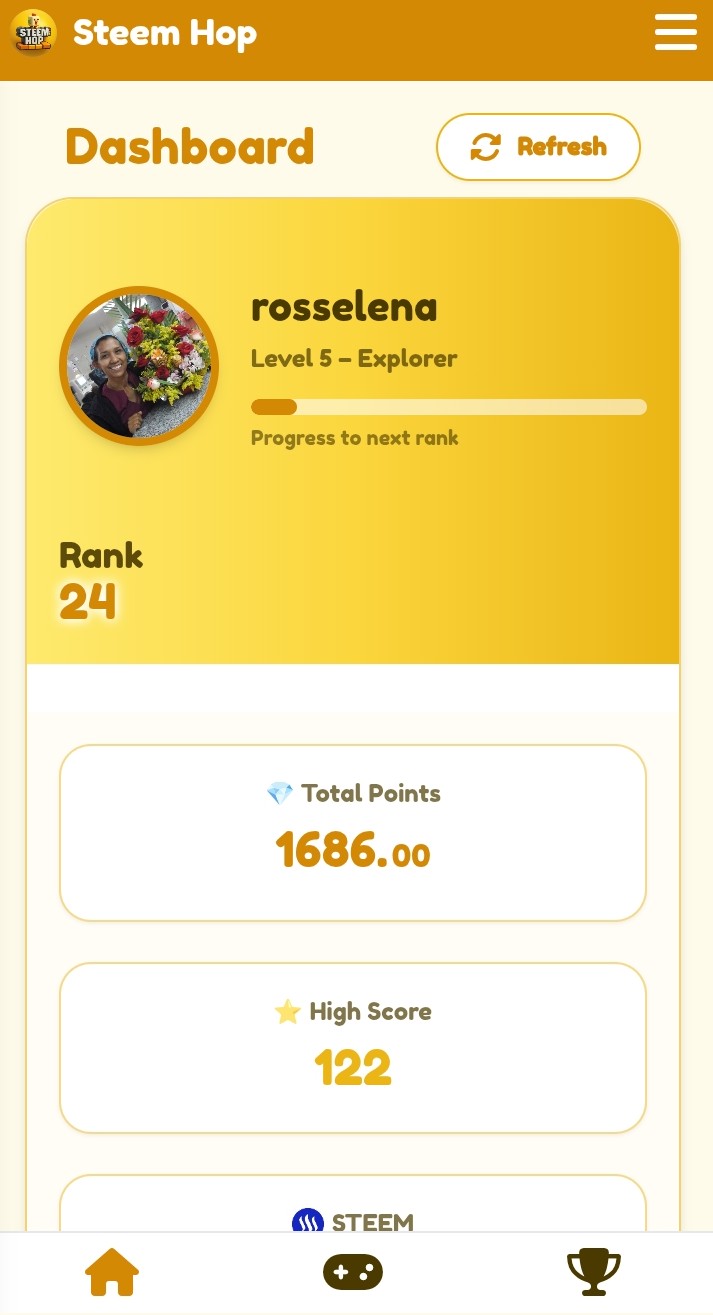 Que tal amigos como están hoy les comparto mis estadísticas dentro del juego #steemhop creado para divertirse una nueva estrategia para atraer a más usuarios a la plataforma, hoy tuve un día de mucha suerte en la ruleta obteniendo el mayor puntaje