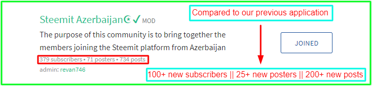 Although the Steemit Azerbaijan Community was established in less than 6 months , it is now at the top of the list of the most active communities on the Steemit Platform.We are growing more and more each month.