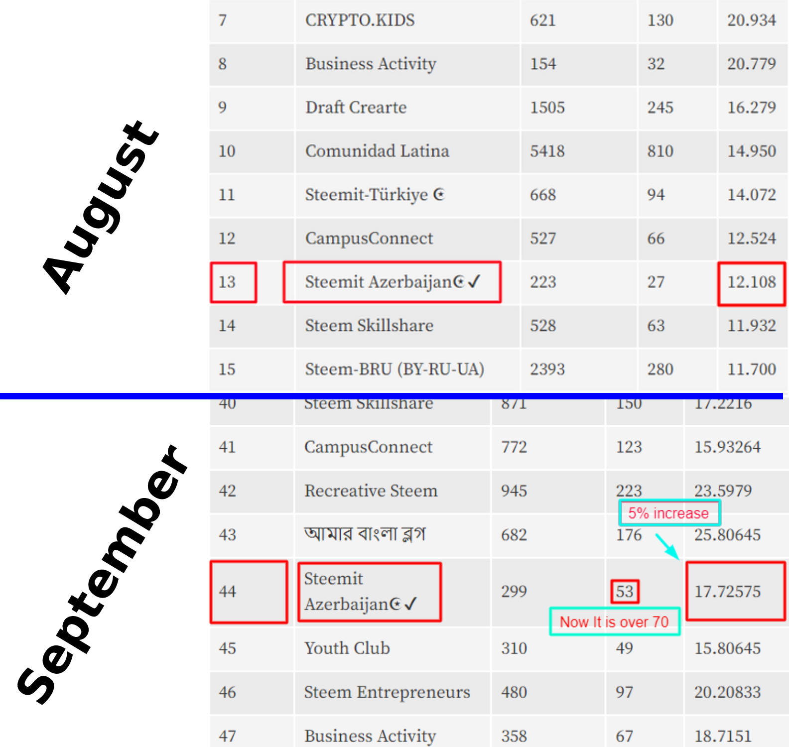 During this one month(september), Steemit Azerbaijan Community gained the highest participation and engagement rate of all time.