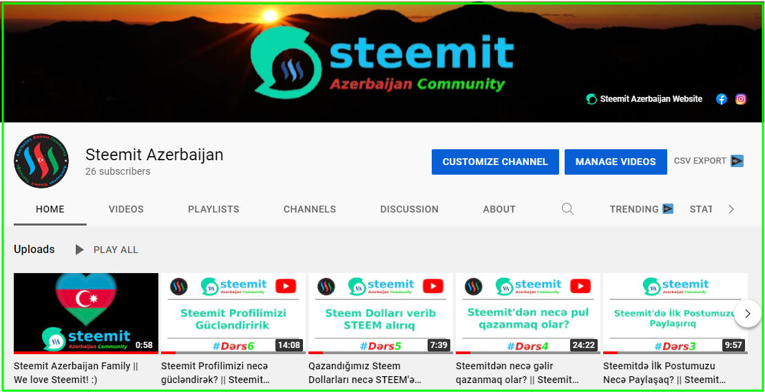 We conduct our digital marketing policy mostly on Facebook and Youtube. Steemit Azerbaijan Community has its own Facebook page and Youtube channel. Thanks to our hard work, a lots of new people have joined us through these channels this month alone and some of them are one of the most active members in our community now.