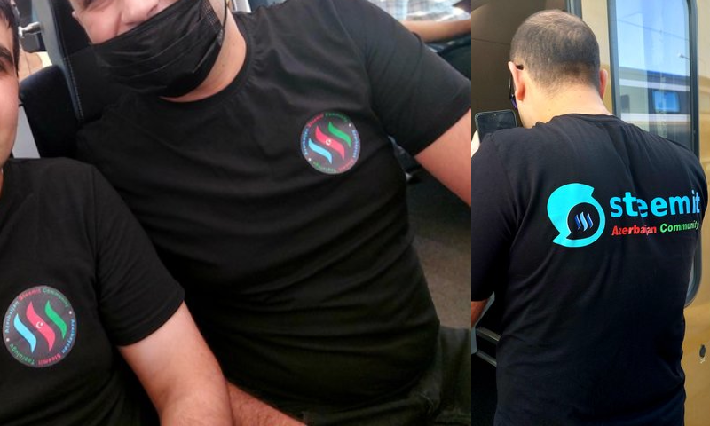So, we prepared and distributed T-shirts with Steemit Azerbaijan Community written on the front and back of almost all our members. These members wear these T-shirts wherever they go and thus somehow draw people's attention to Steemit Azerbaijan Community. We even gained a few new Steemians this way. :)