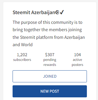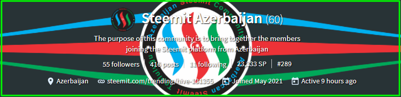 Steemit Azerbaijan Community is the only community that represents Azerbaijan as a country on the Steemit platform.