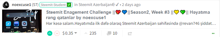 3-ci yerin qalibi @noexcuse1Steemit Enagement Challenge ||💖💙||Season2, Week #3 ||💛💚|| Həyatıma rəng qatanlar by noexcuse1