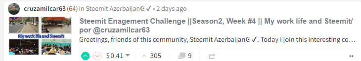 2-ci yerin qalibi @cruzamilcar63 Steemit Enagement Challenge ||Season2, Week #4 || My work life and Steemit/ por @cruzamilcar63