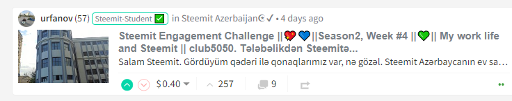 3-ci yerin qalibi @urfanov Steemit Engagement Challenge ||💖💙||Season2, Week #4 ||💚|| My work life and Steemit || club5050. Tələbəlikdən Steemitə...