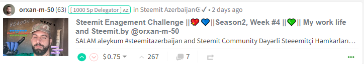 1-ci yerin qalibi @orxan-m-50 Steemit Enagement Challenge ||💖💙||Season2, Week #4 ||💚|| My work life and Steemit.by @orxan-m-50