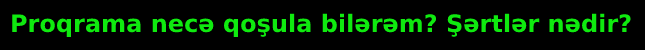 İlk şərtimiz odur ki, sən tələbə olduğunu bizə sübut etməlisən. Bunun üçün Telegram qrupumuza gedib, bizimlə əlaqə saxlayırsan. Ordada sənin tələbə olduğunu dəqiqləşdirdikdən sonra, artıq aşağıdakı digər şərtləri qarşılamağa keçə bilərsən.