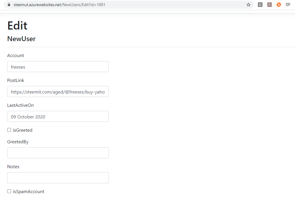 - Steem Greeter team can update the isGreeted, GreetedBy, and Notes fields if they find the post valid or they could mark that as Spam.