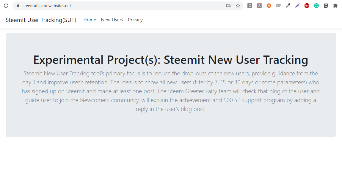 SUT - Steemit New User Tracking feature - Release 0.1.0 - Deployed now.