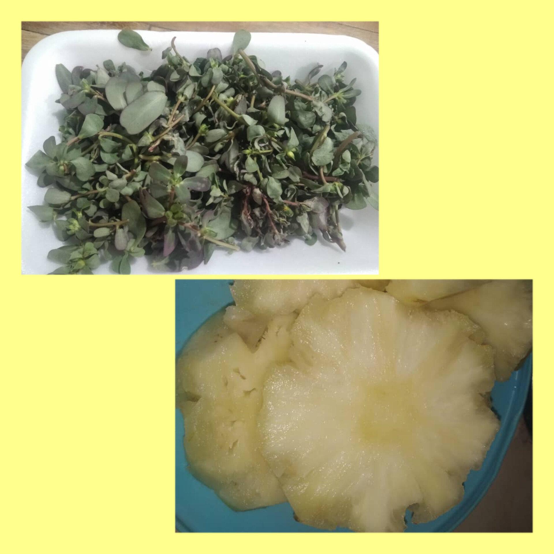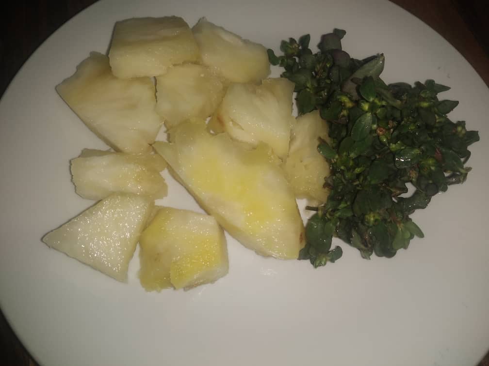 🍀 Luego de pelar la piña y lavar muy bien la Verdolaga vamos a picar en trozos para que sea más fácil licuar
