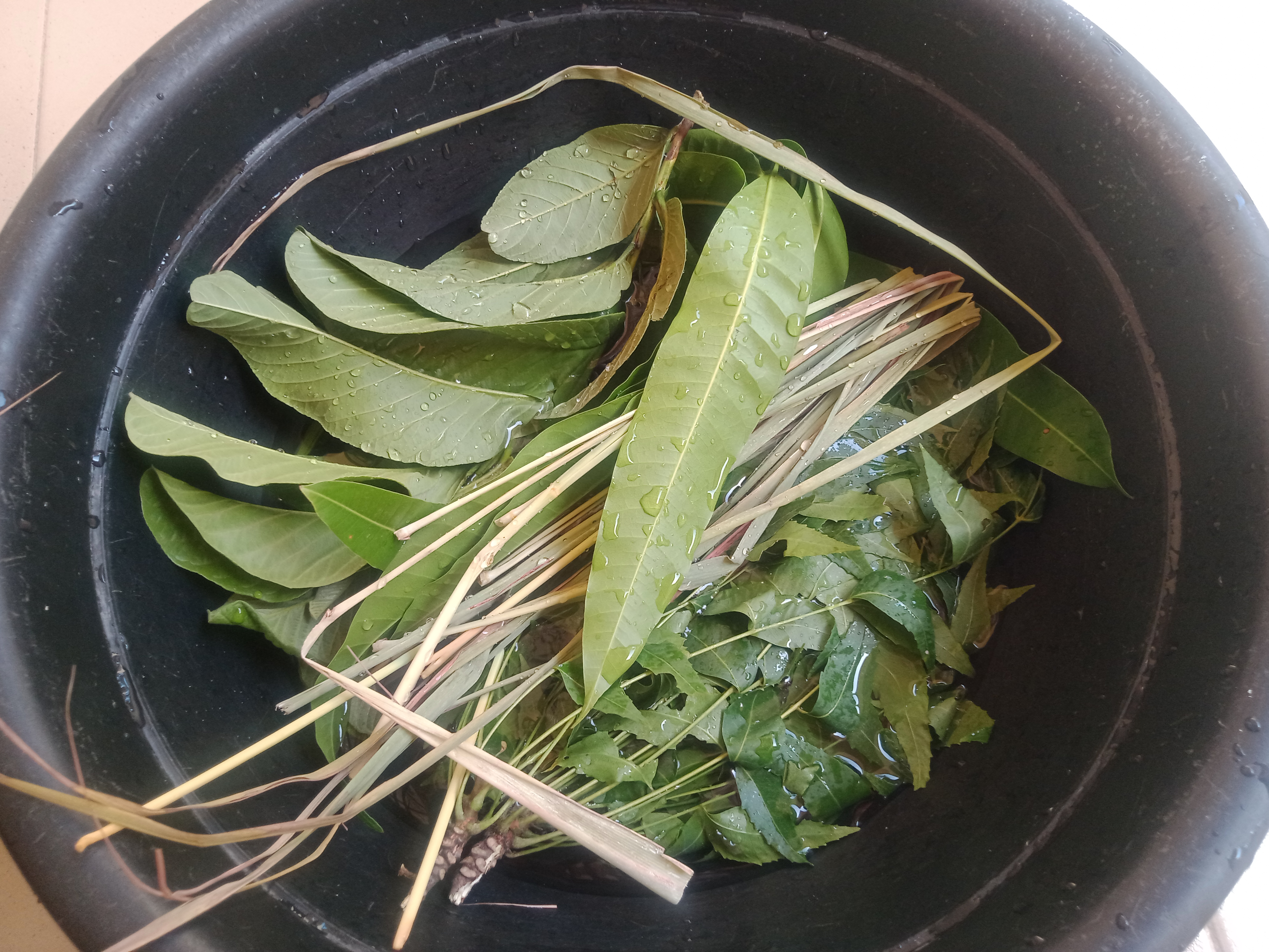 Step 1: Get your leaves ready I.e mango leaves, moringa leaves, guava leaves and lemongrass as seen in the image below.