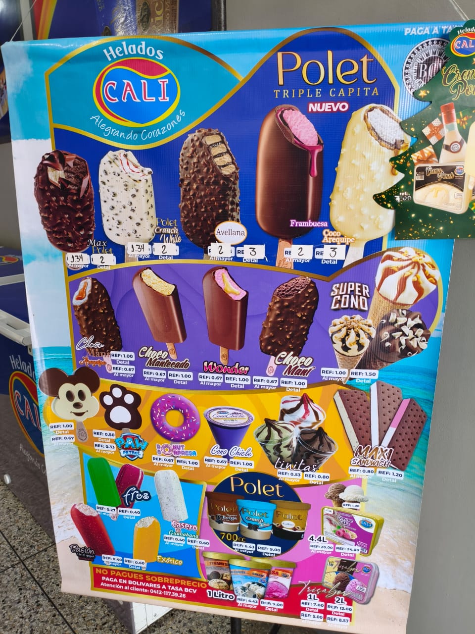 - Helados de 1 litro precio al mayor 6.63$ y al detal 9$