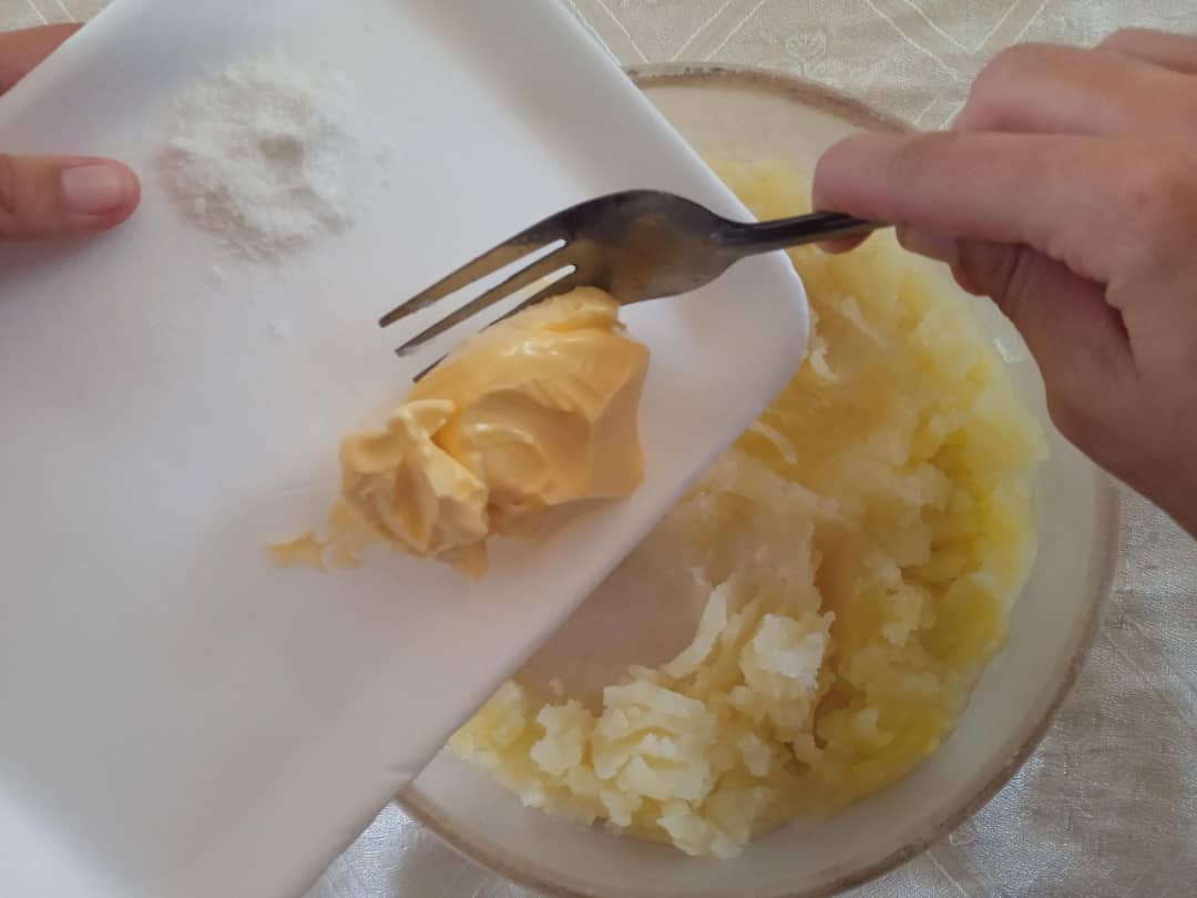 Puse las papas a cocinar en una olla con agua a lo que estuvieron listas las saque del agua y le agregué la mantequilla, el queso y sal al gusto.