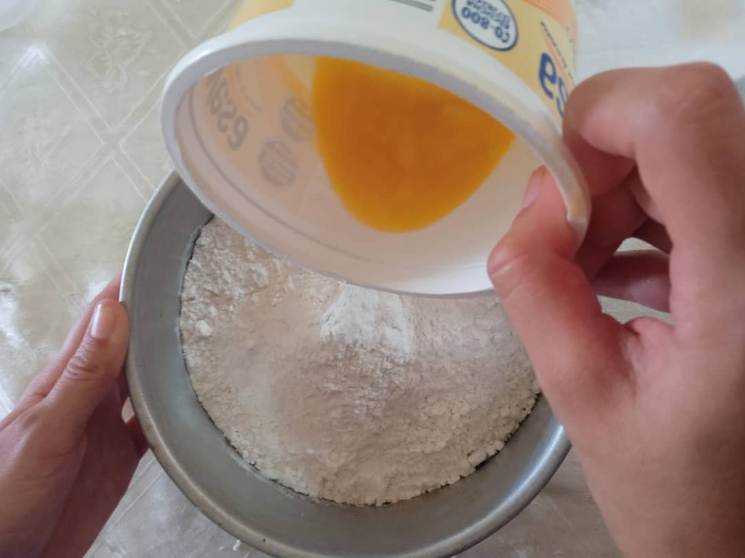 En una taza se le agrega la harina de trigo, luego la mantequilla y la sal.