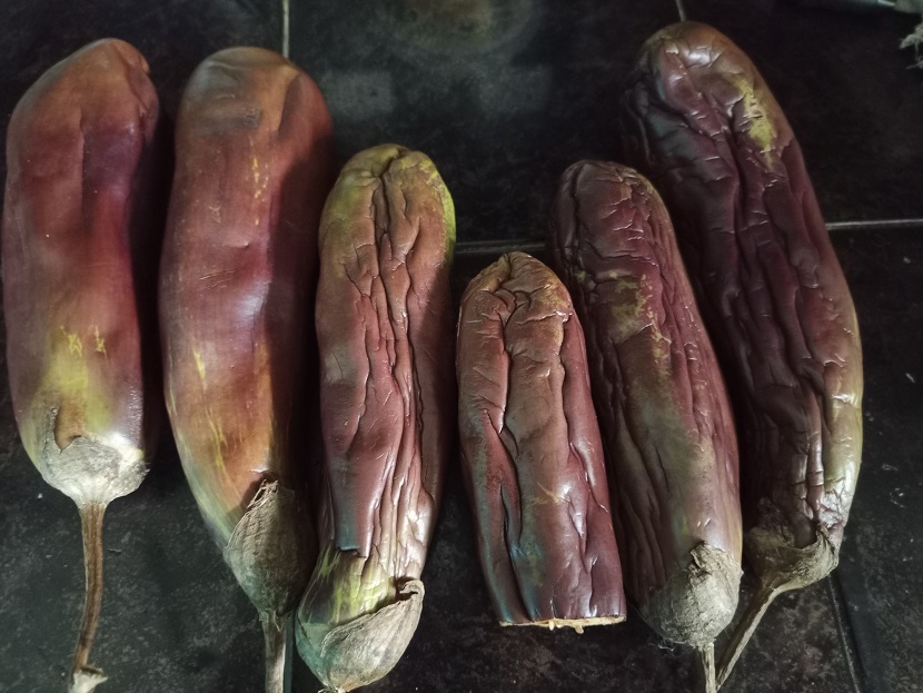 ✅ Lavamos nuestras berenjenas y la vamos a llevar asar hasta que estén negritas, dando vuelta para que se cocinen completamente. Si no que se inflan, puye con un tenedor. Las berenjenas arrugaditas también sirven para esta preparación. Lo que debes ver es que no estén malas.