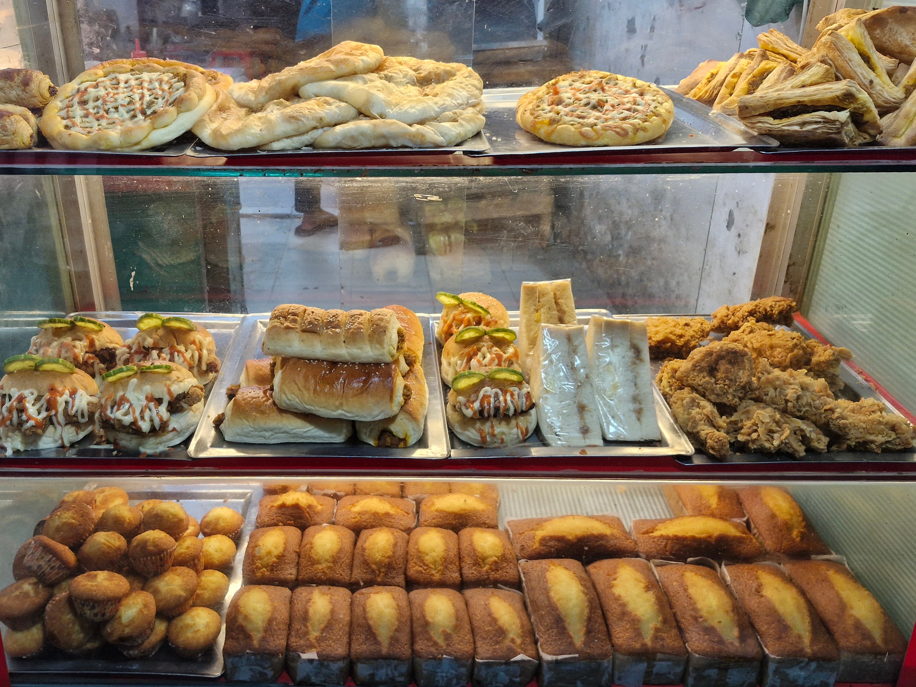 This bakery offers a wide variety of items such as bread, cakes, biscuits, patties, chicken burgers, pizza, and different kinds of delicious sweets.