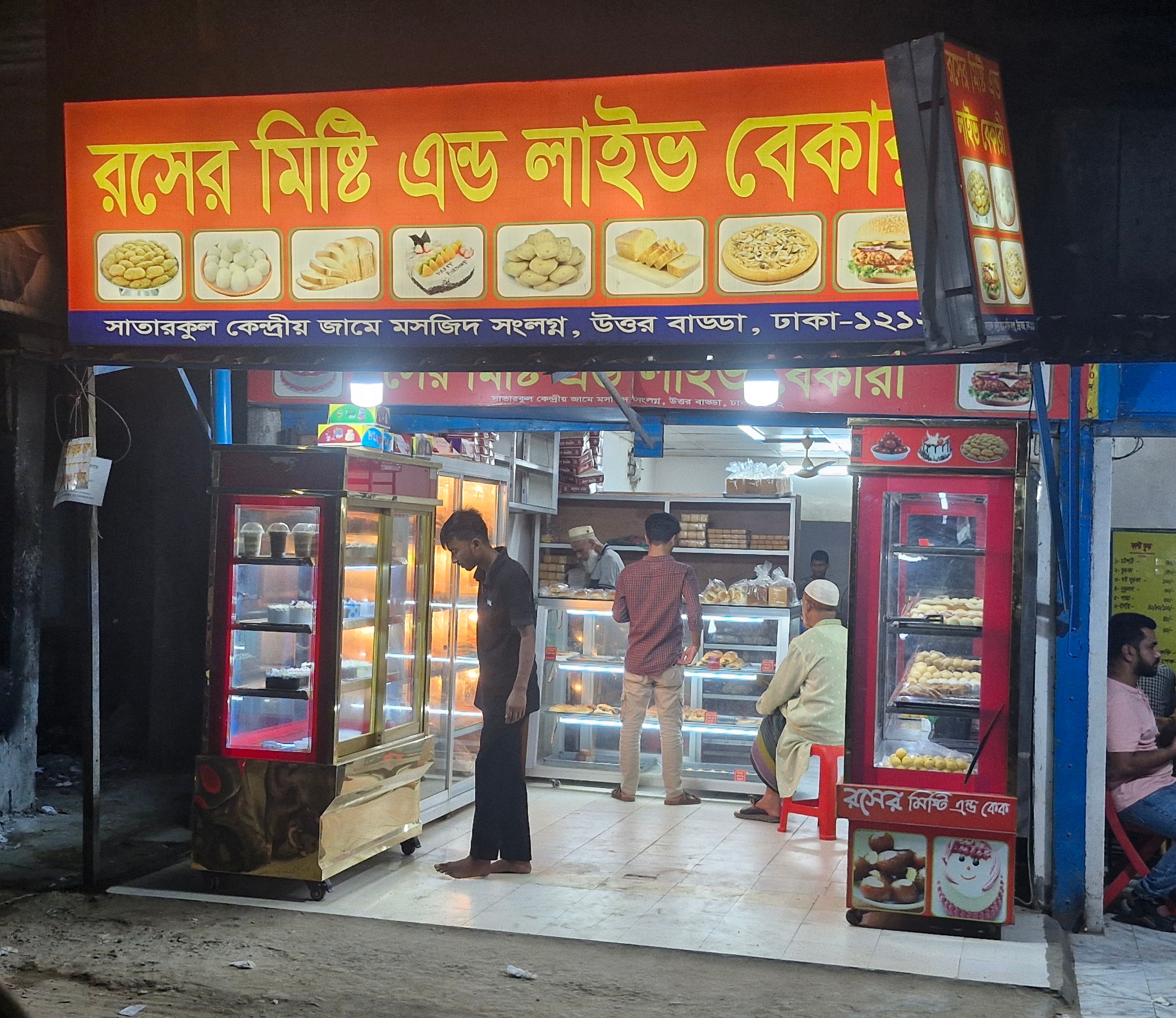 Today I am going to talk about a bread stall located in Dhaka. The name of the bakery is Roser Misty & Live Bakery. It is situated near the Central Jame Mosque in North Badda, Dhaka.