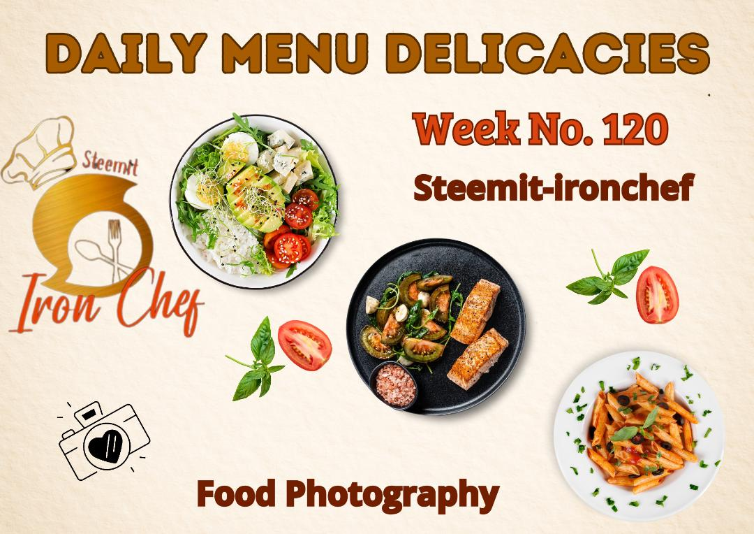 The Title of your publication must be Daily Menu Delicacies Week No.120. date (00-00-2026) // The name of your choice, (Try to be brief, we do not want very long texts)