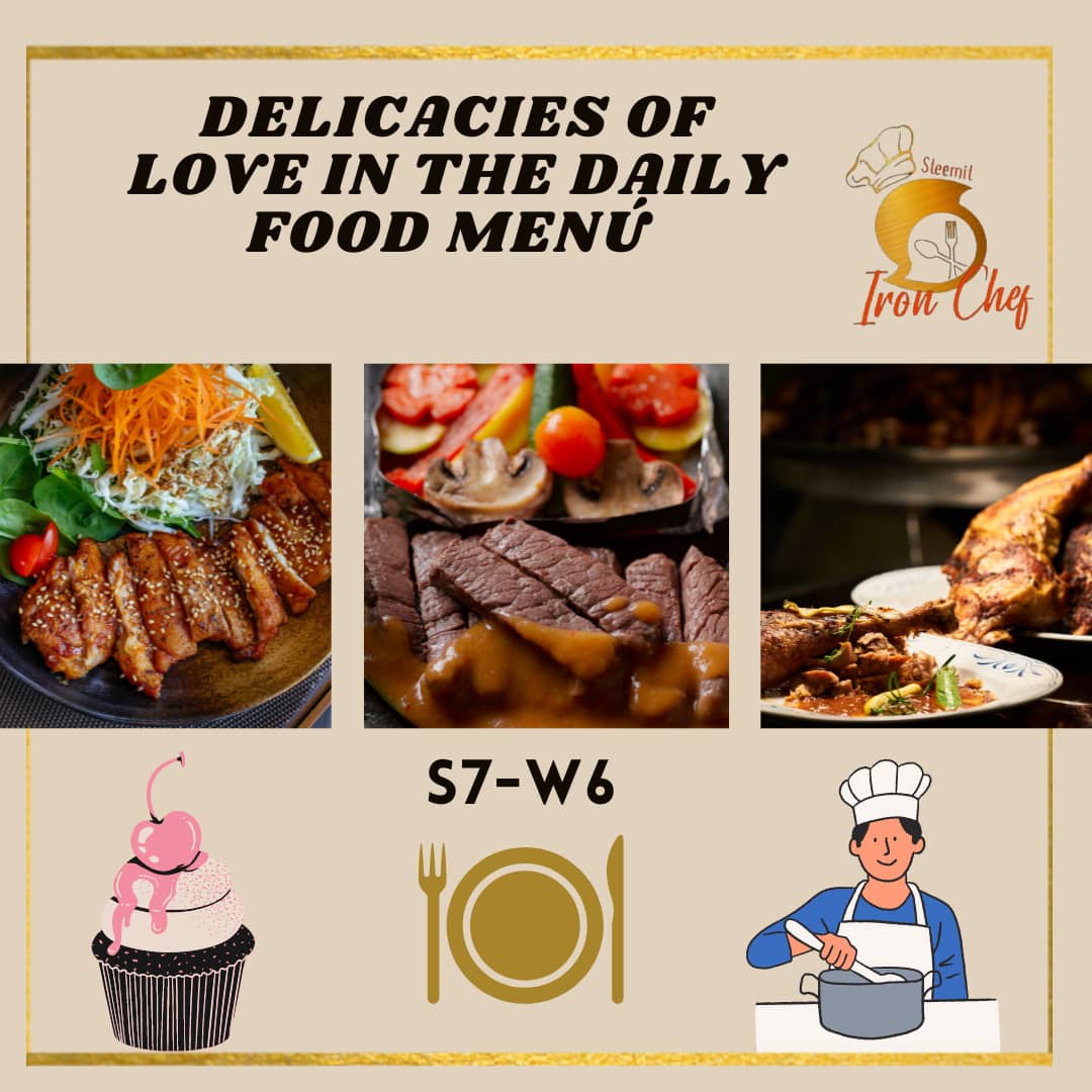 🔸 The Title of your publication must be: Steemit Engagement Challenge S7-W6: " Delicacies of love in the daily food menu.".