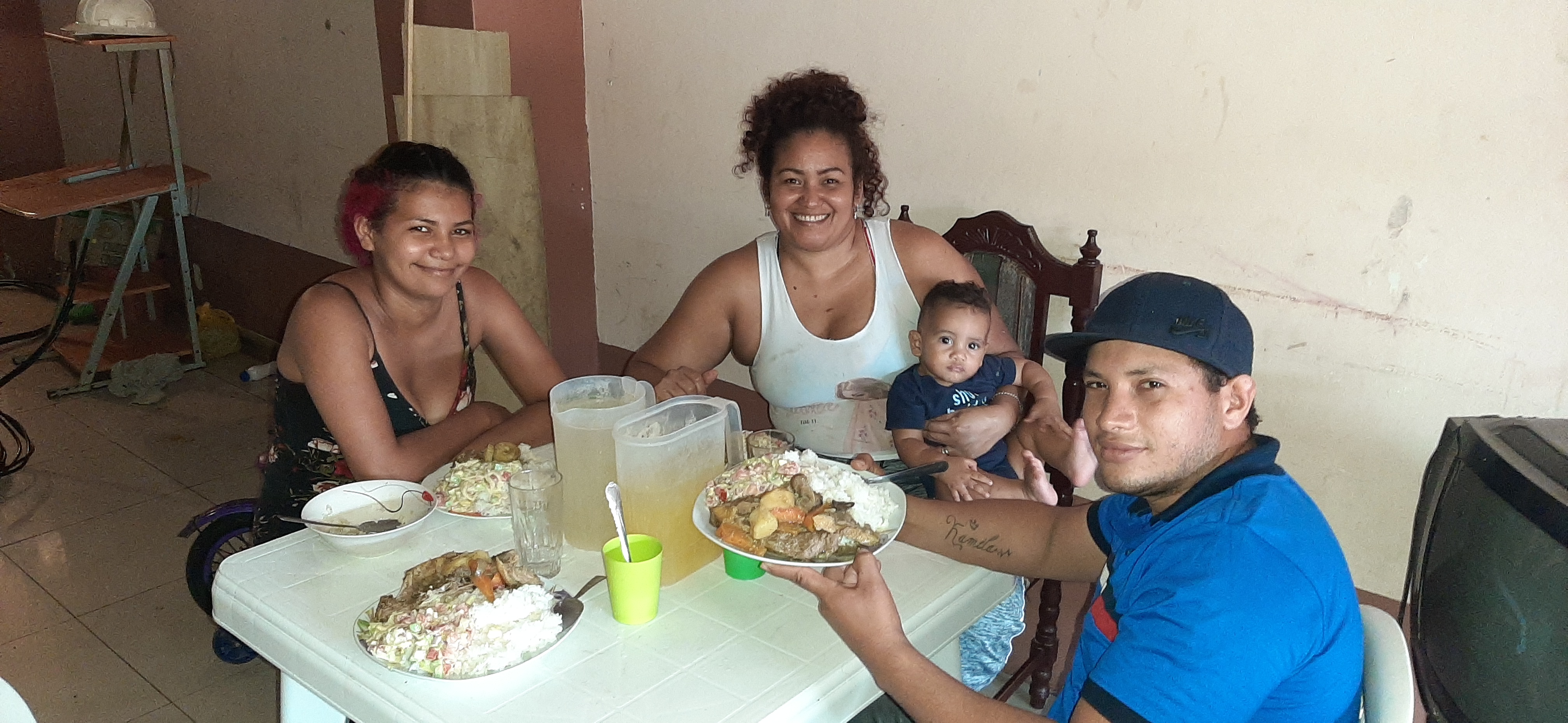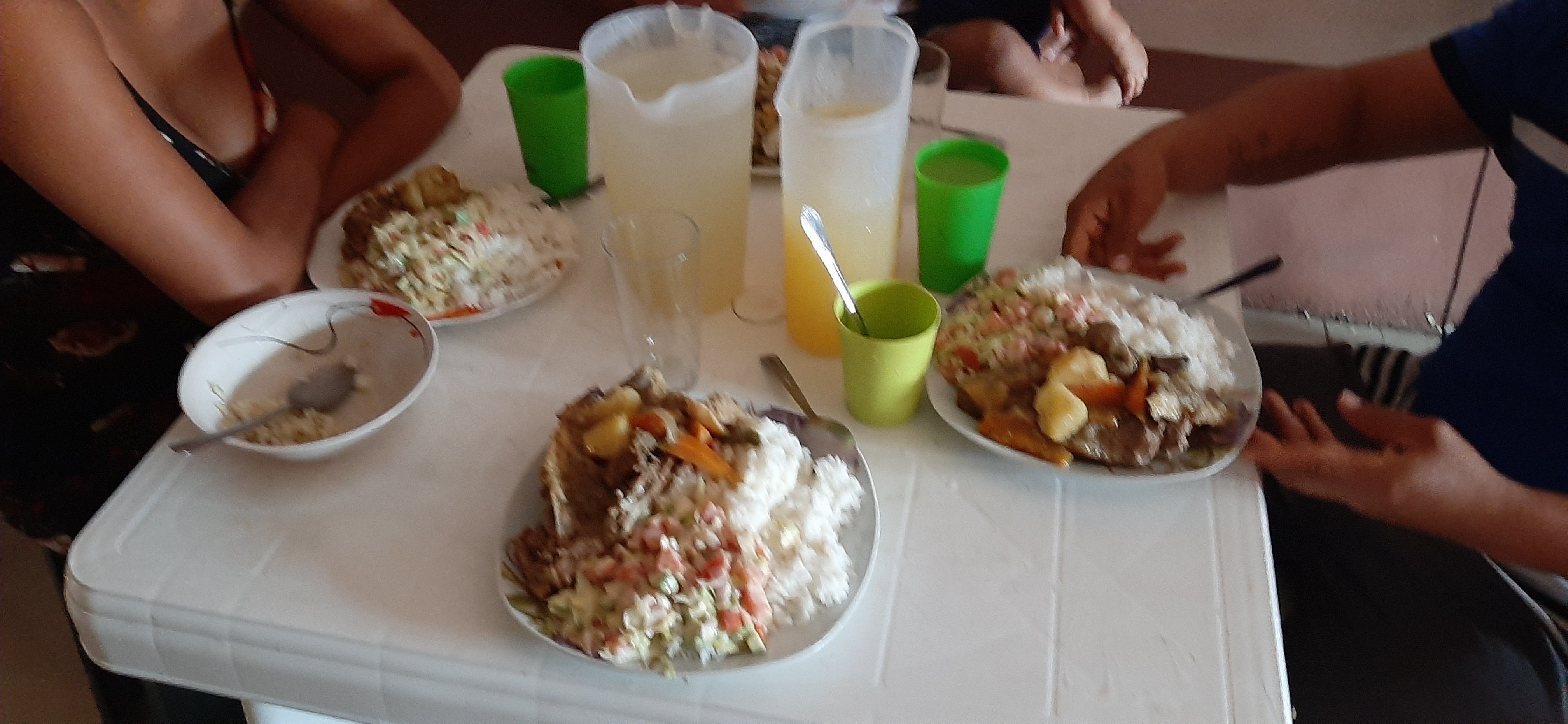 Que día yo con mucha hambre y el pato sin estar bueno lo cierto es que el pato horneado estuvo a eso de la 3:30 y aquí almorzando mi sobrina Yosmary y su pareja Adolfo y mi sobrino santiago
