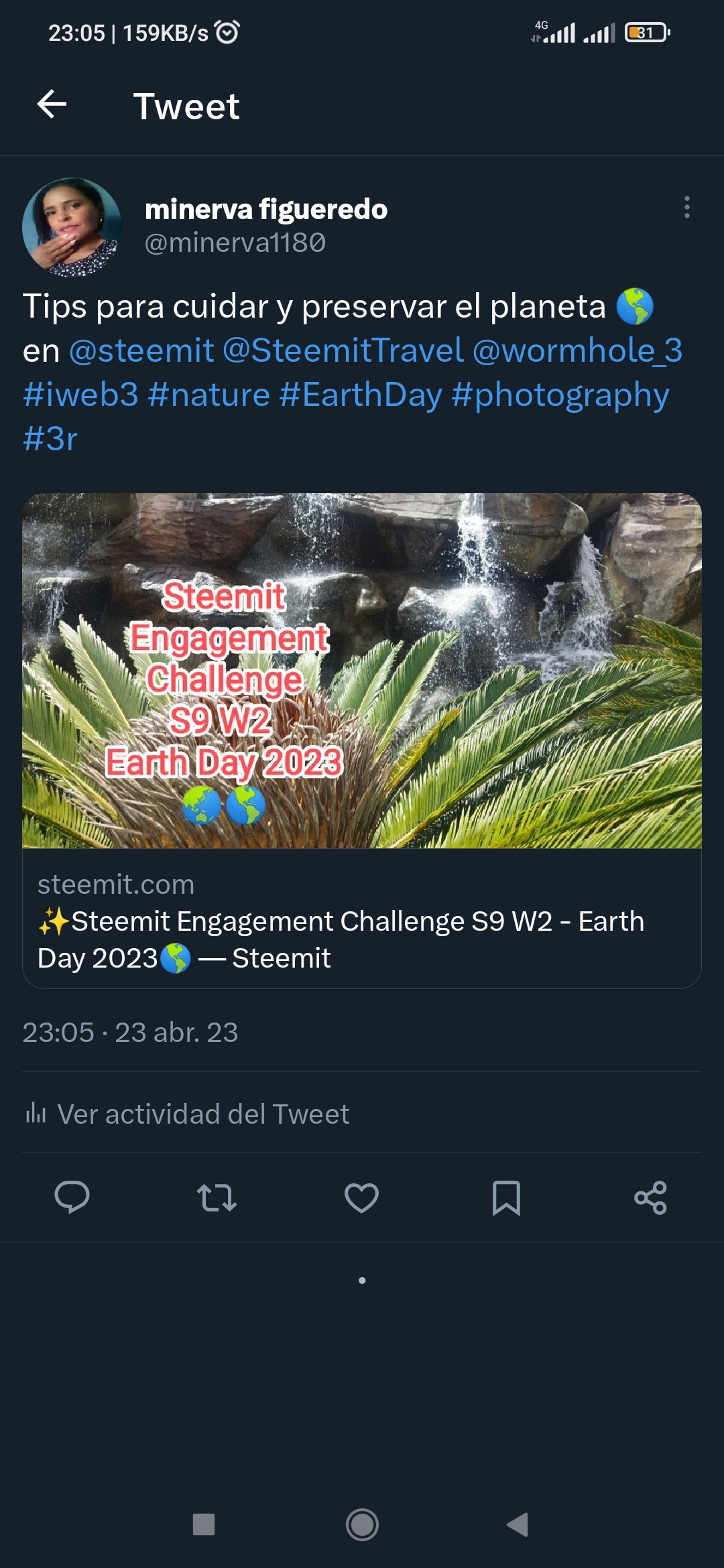 https://steemit.com/hive-163291/@mini80/steemit-engagement-challenge-s9-w2-earth-day-2023