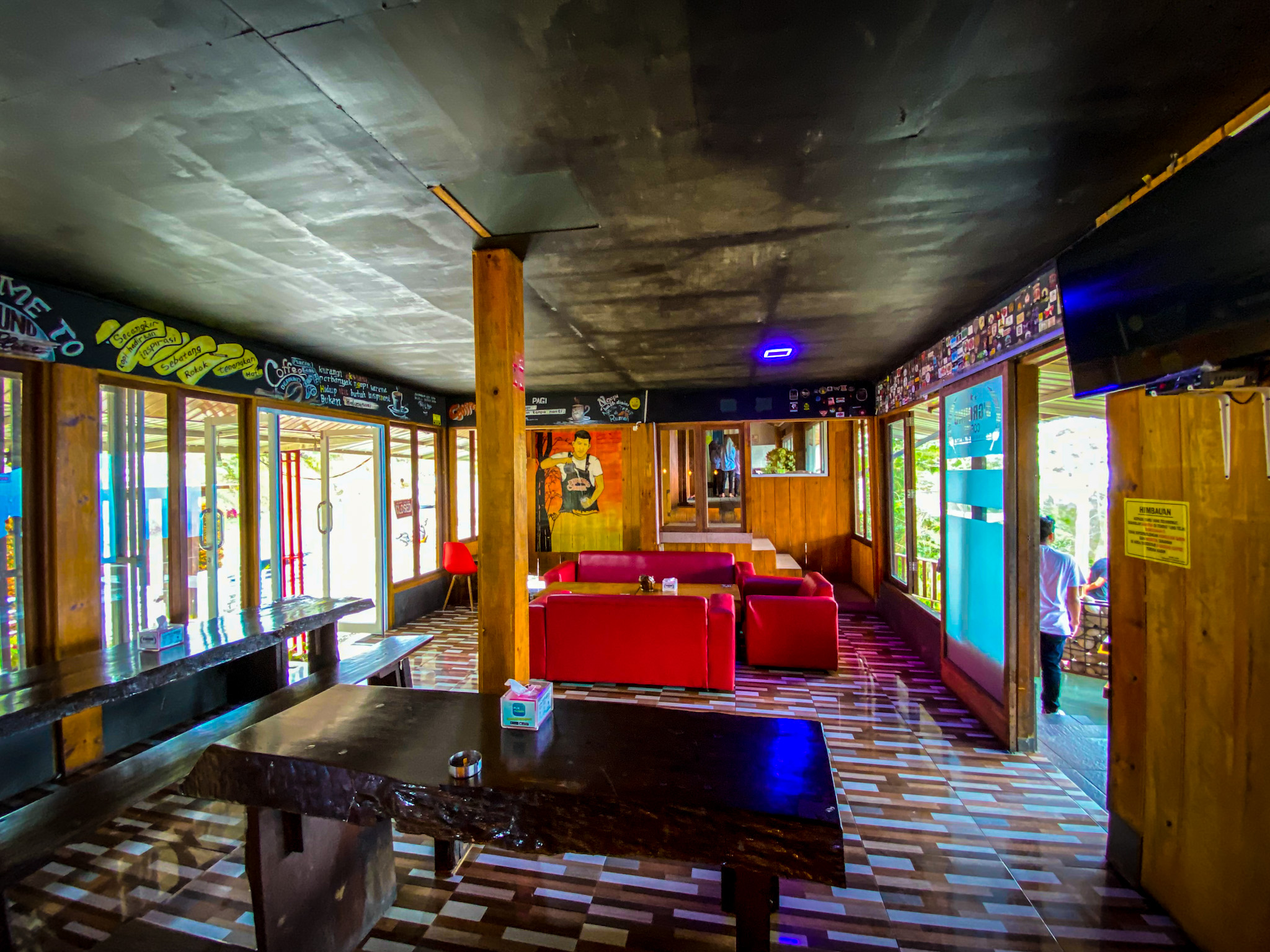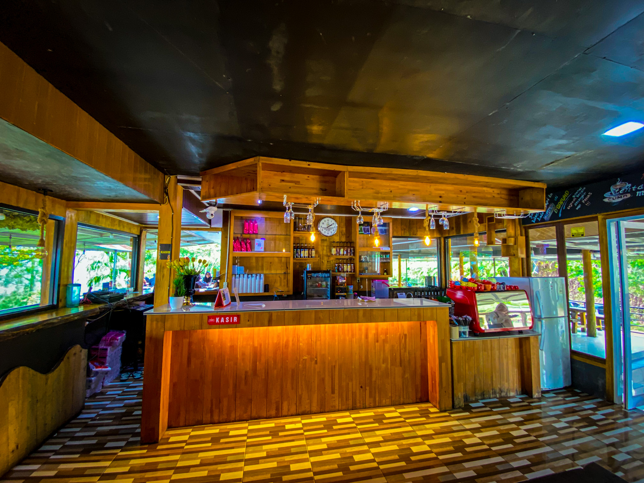 This cafe is located on the left side of the road after the bend on the KKA-Takengon road which can be reached in about 1 hour's drive from downtown Lhokseumawe. This cafe has a minimalist building that is aesthetic and looks elegant. They provide seating adjacent to the bar room, an aesthetic interior design with wall materials and wood-colored paint dominates the room.