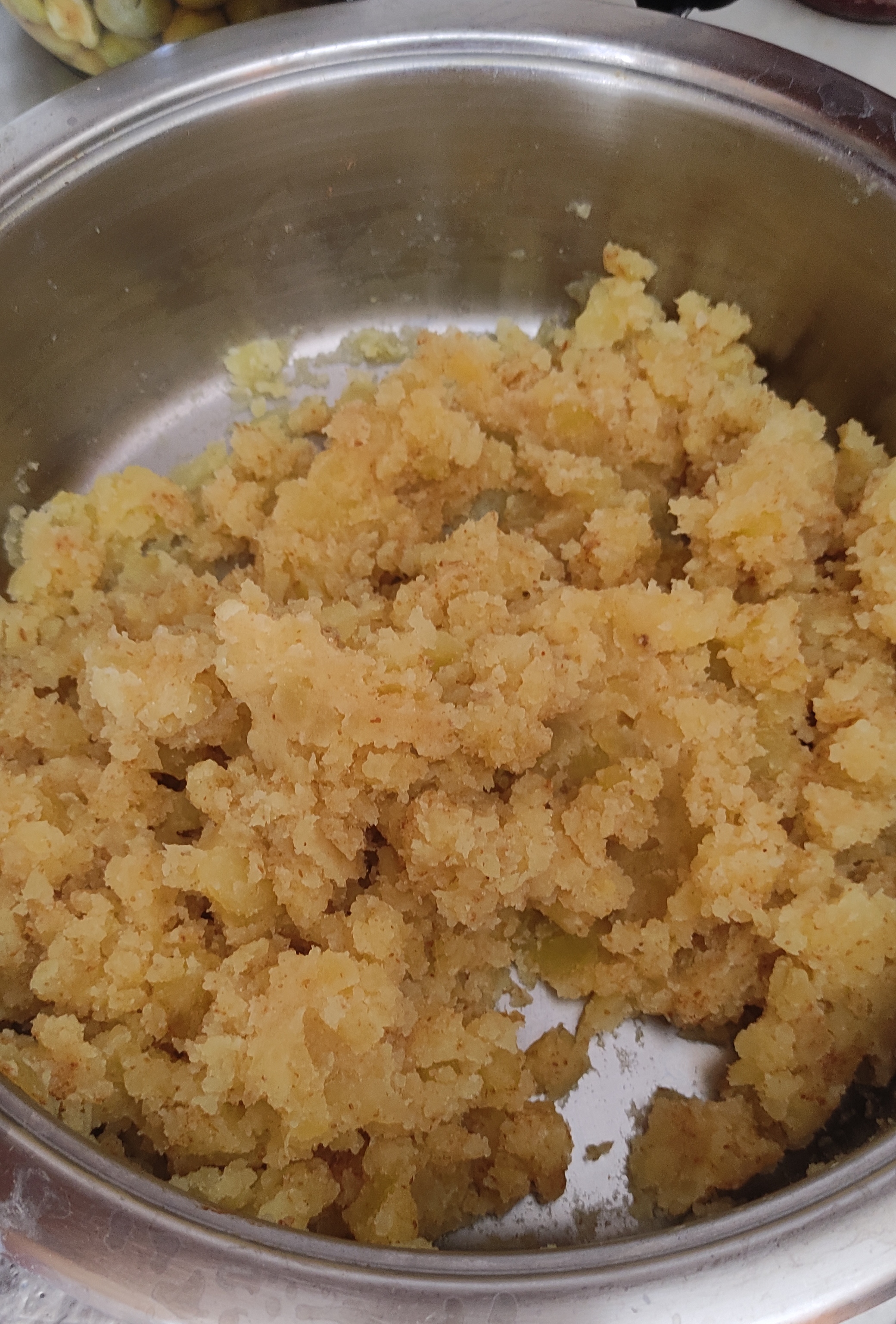 Patatesler haşlanınca onları çatal yardımı ile ezdim. Üzerine kimyon serpiştirdim.
