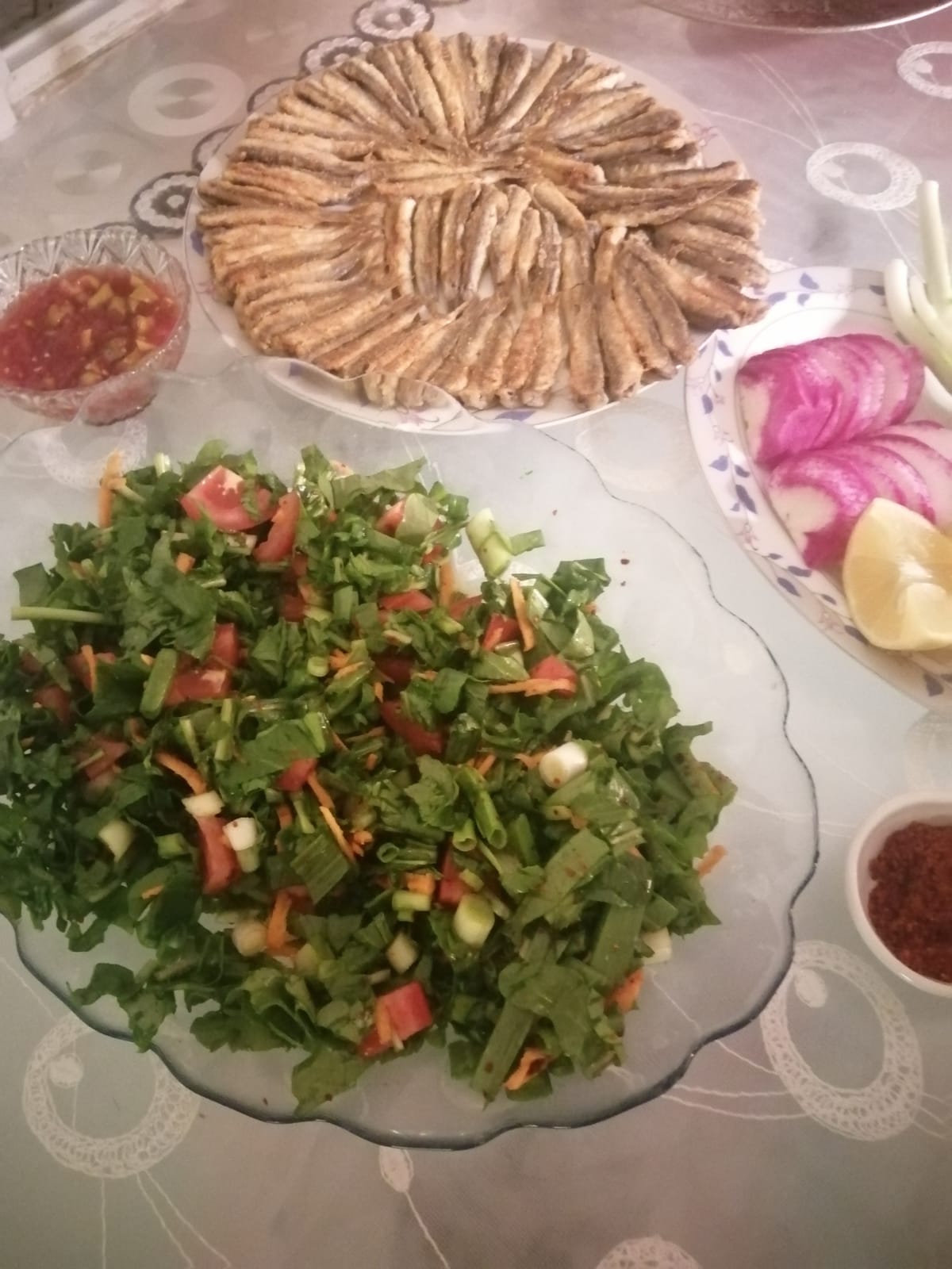 Sevgili steem ailem artık havalar iyice soğudu bu havada en güzel gidicek olan şey balık bence her insanın yemesi lazım biz ailecek balık yemeyi severiz özellikle çocukların sevmesi ve yemesi bizi daha da sevindiriyor o yüzden haftanın bir günü mutlaka balık yeriz bizde balığı genelde eşim yapar hamsi tava yi özellikle sanki bu iş kendine verilmiş gibi özenerek yapar bende o sırada salatayi ve sofra düzenini kurarim