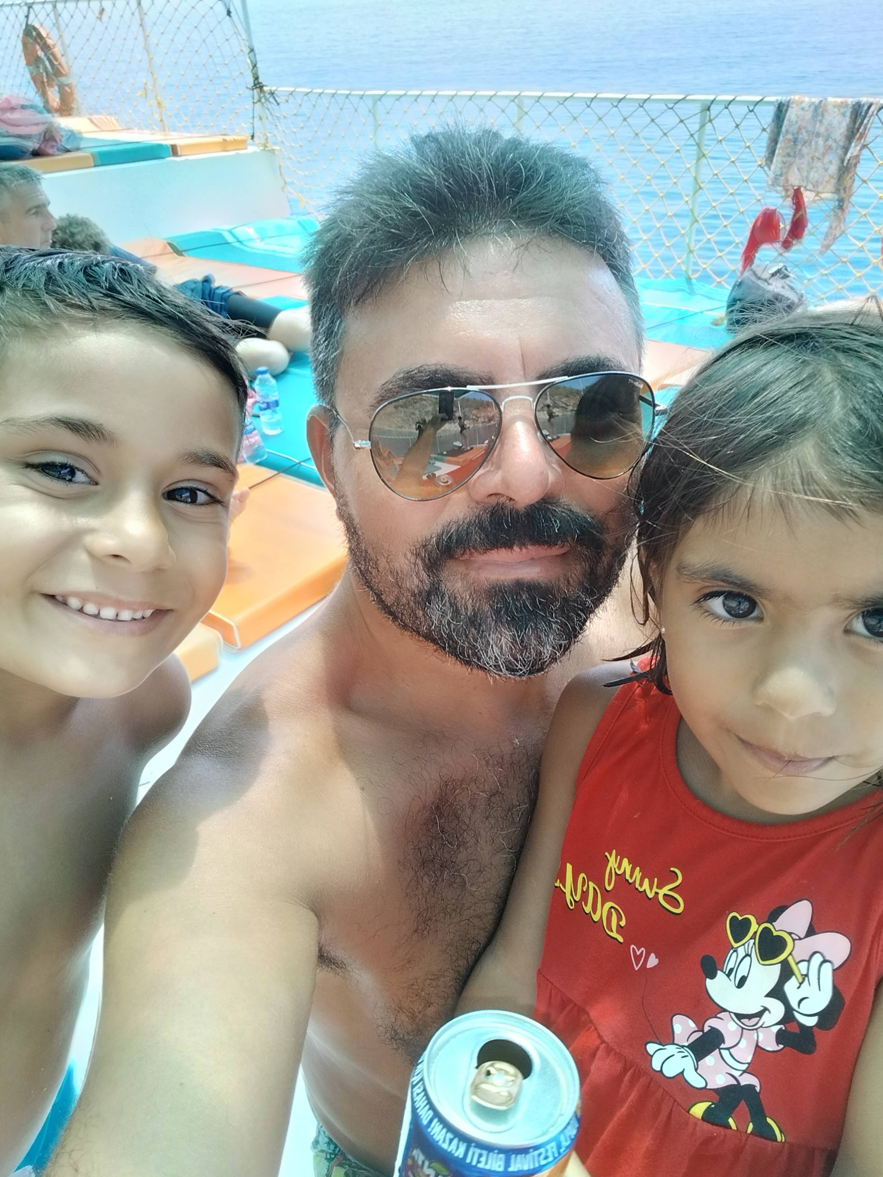 Çocuklar acıktıklarını söylediler. Biz de denizden çıkarak, sahilin az ilerisinde yer alan kafeden yiyecek ve içecek bir şeyler aldık. Hep beraber karnımızı doyurduktan sonra, tekrar denizin keyfini çıkarmak için, suya atladık. Abim Ali'ye nasıl yüzmesi gerektiğini gösteriyordu. Bende Naz'ı omzuma alarak O'nu denizin içinde gezdiriyordum. Abimin eşi de bizi izliyordu.